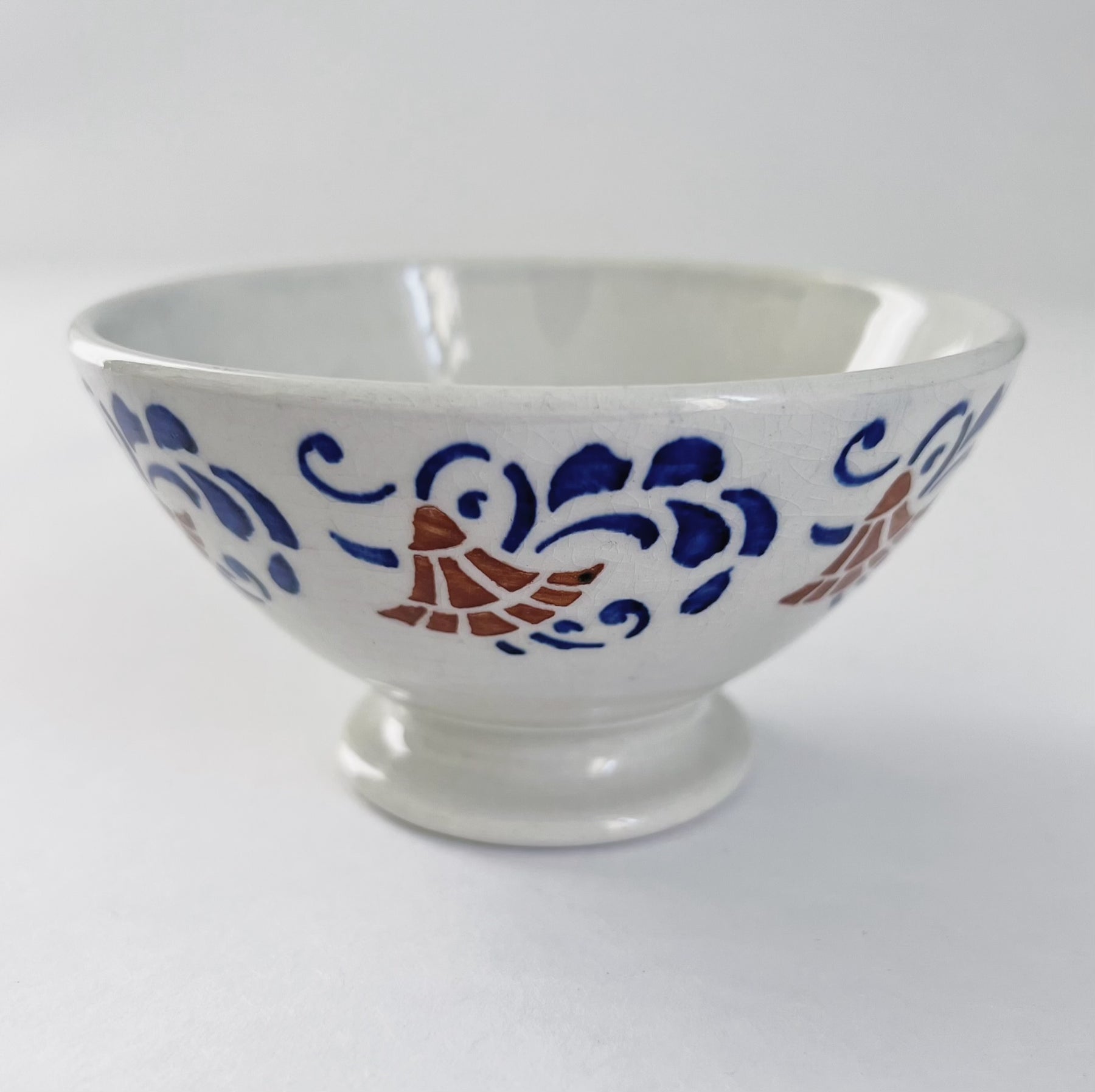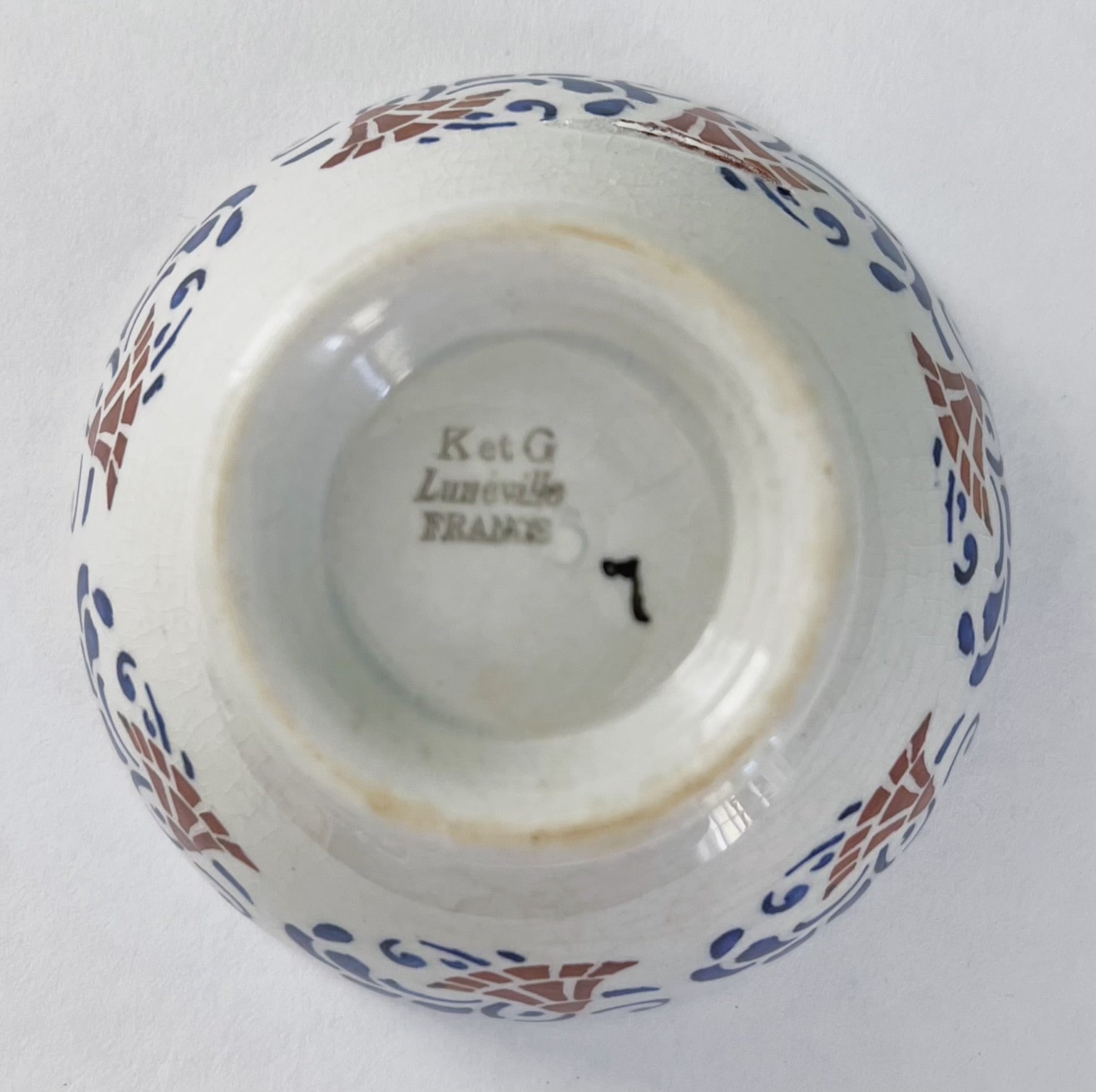 Meget smuk gammel fransk kaffeskål fra Luneville. Skålen er fra første halvdel af 1900 tallet. Disse kaffeskåle (også kaldet "bol" på fransk) brugte franskmændene til morgenkaffen.