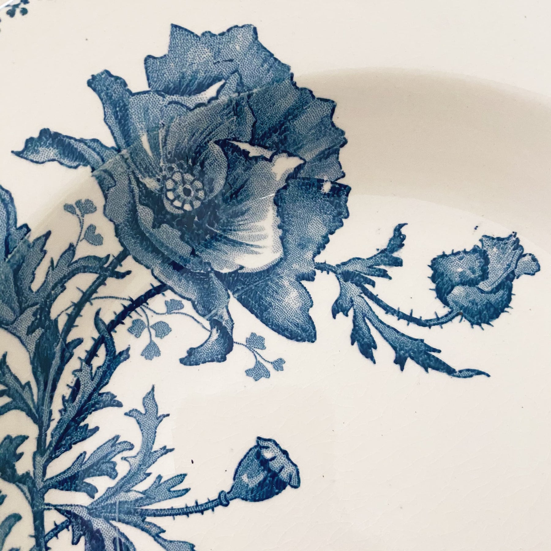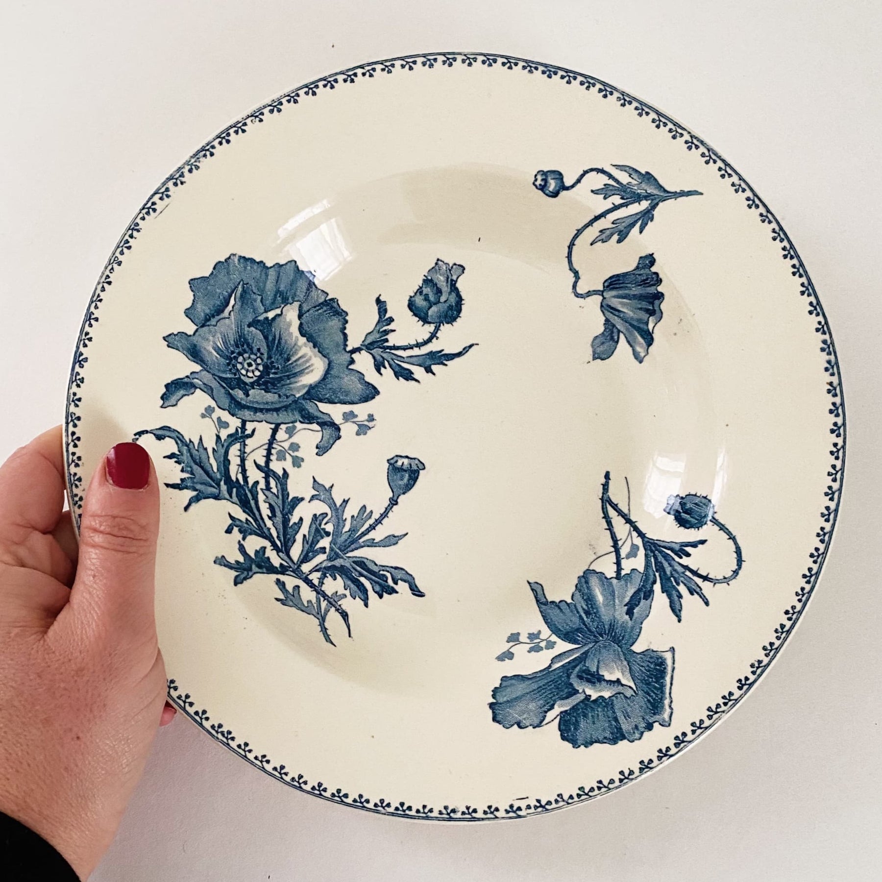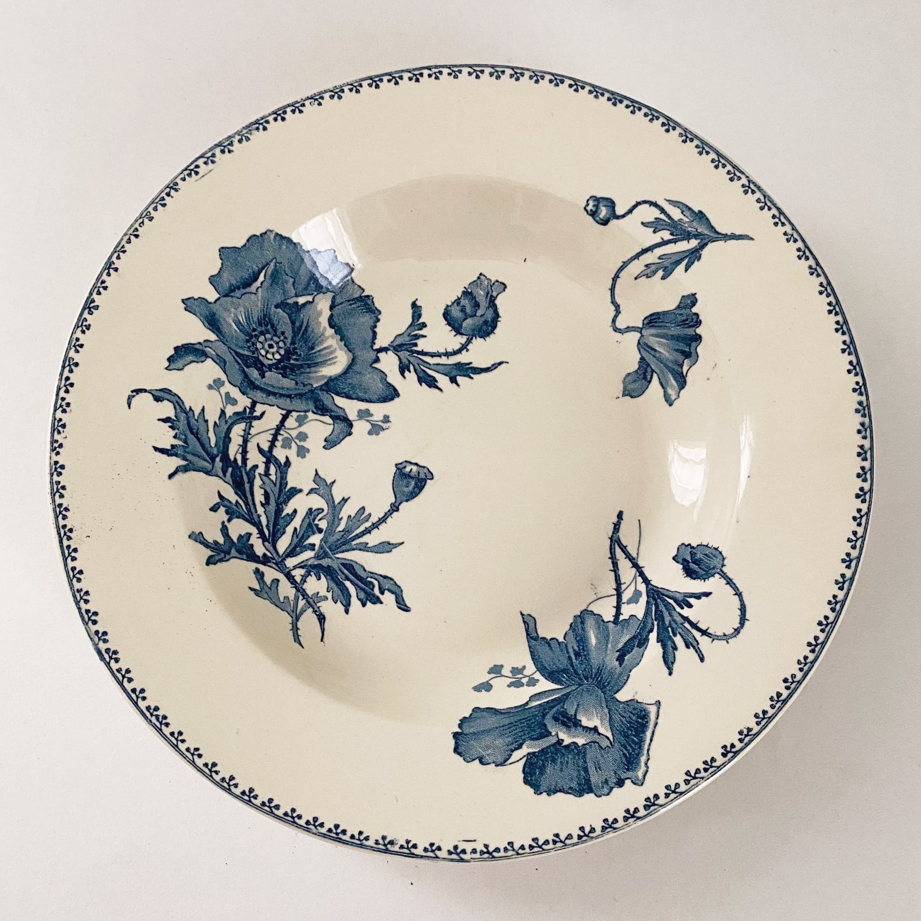 Smuk dyb tallerken med valmuemotiv fra Sarreguemines. Modellen hedder Feria og fra første halvdel af 1900 tallet. Sjælden model.