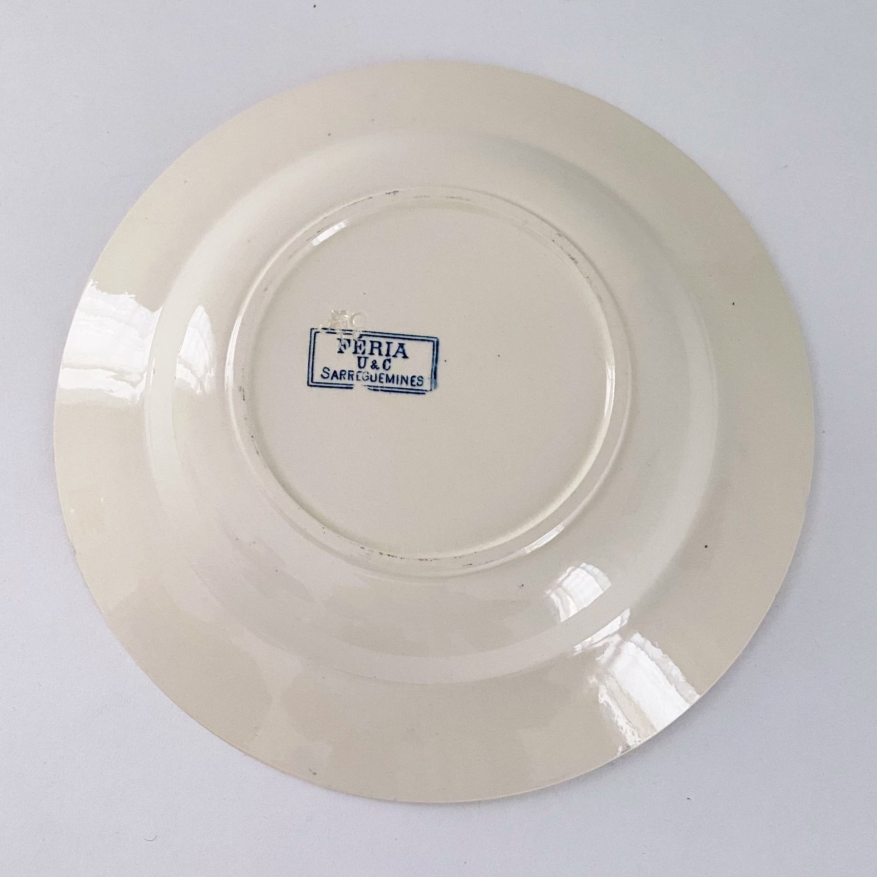 Generelt: Alle tallerkener til salg er gamle franske tallerkener der er ca mellem 70-140 år gamle. De har derfor slidspor og nogle lidt forskellig patina. Trykket på tallerkenen kan også variere en smule. Såfremt tallerkenerne har revner eller skår vil det fremgå af tekst og billeder.