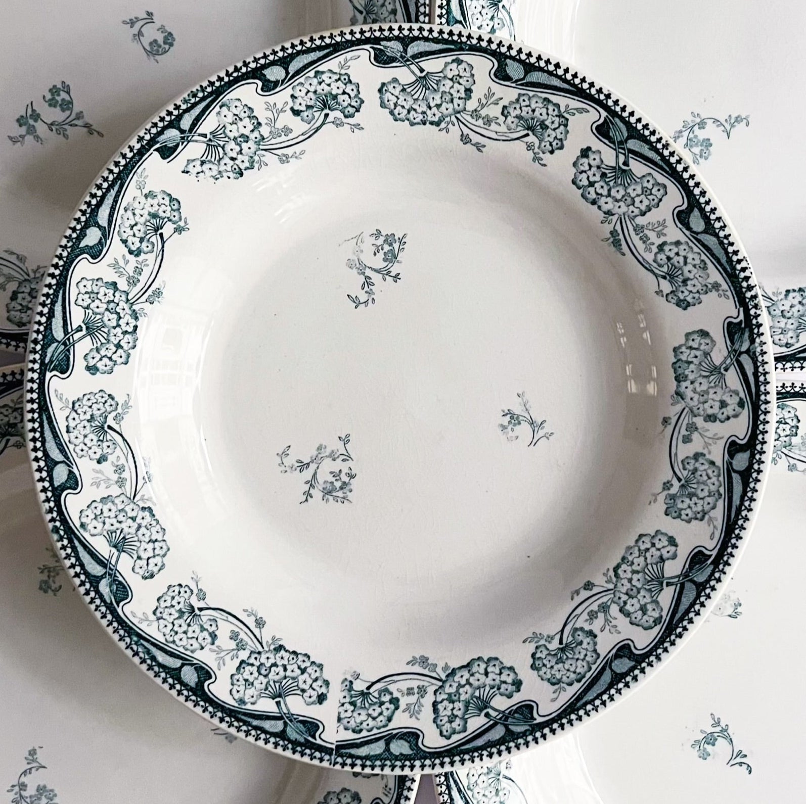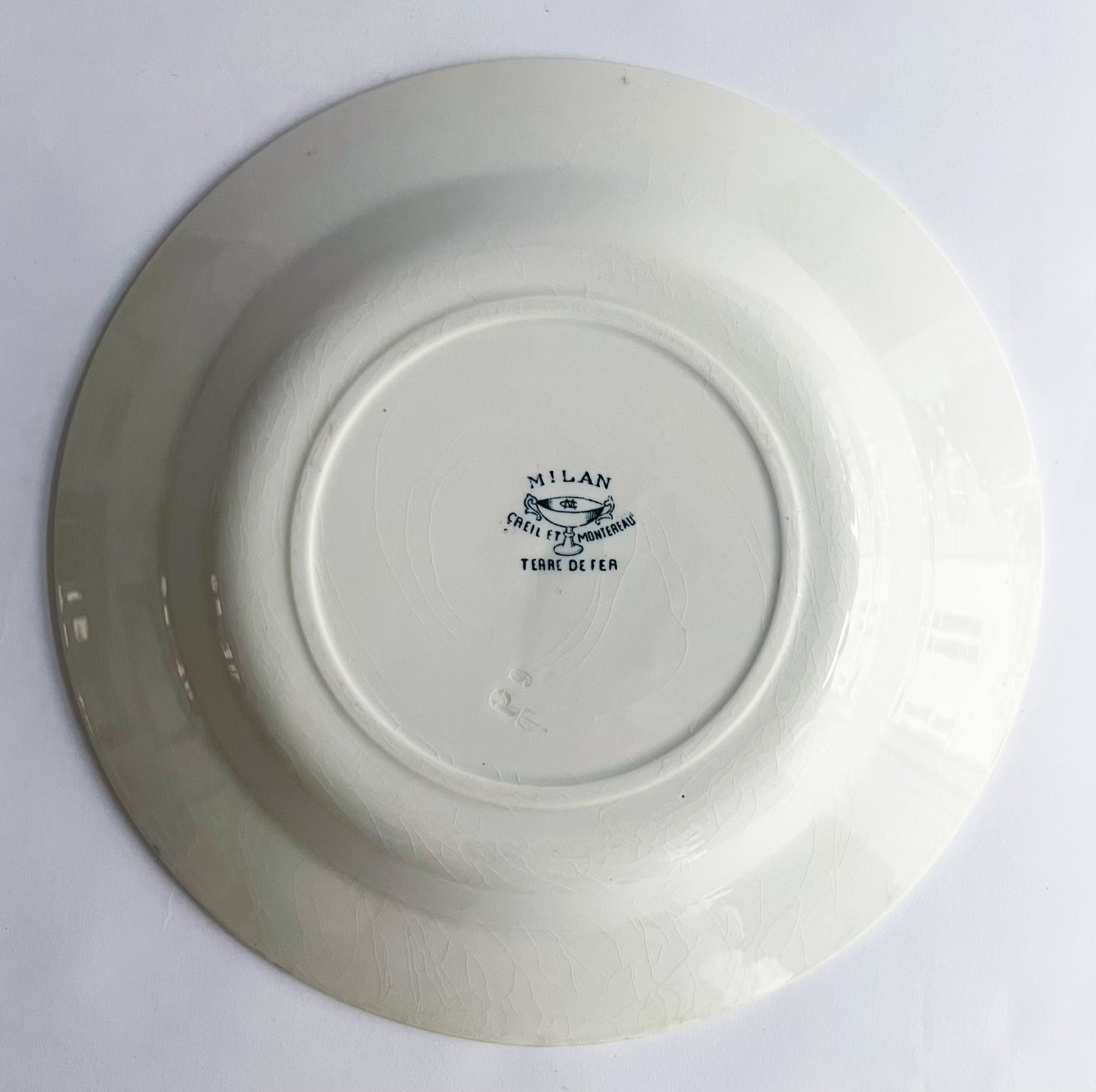 Smuk gammel dyb tallerken fra Creil et Montereau. Modellen hedder Milan og er fra start 1900 tallet.