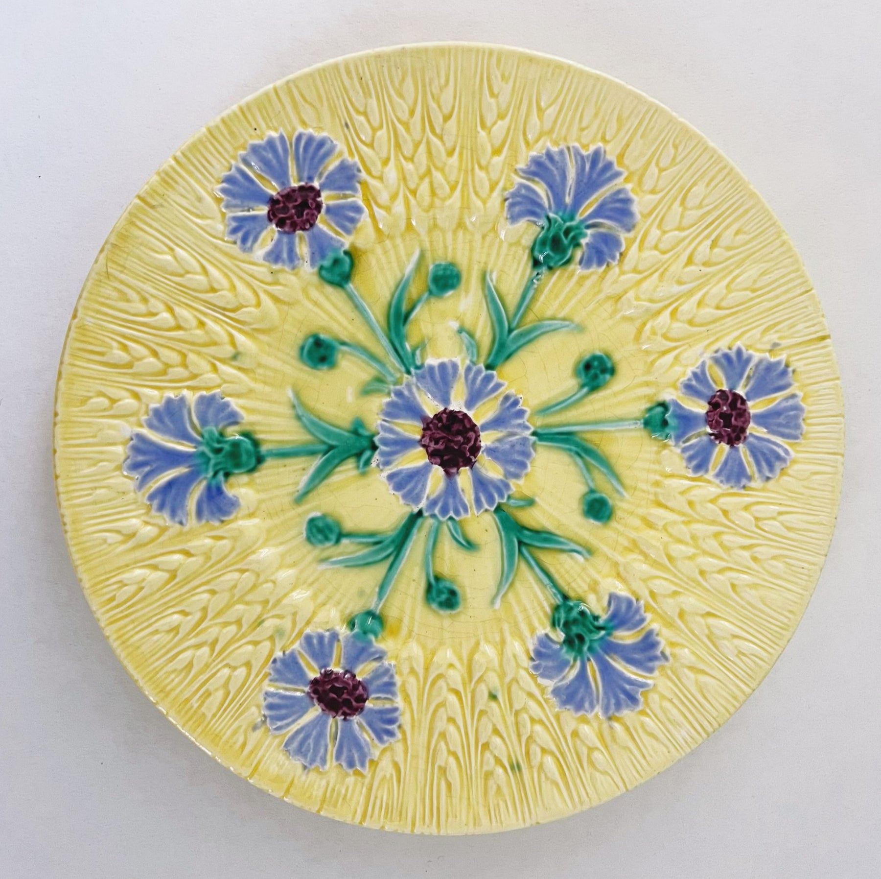 Smuk gammel fransk barbotine kage-/desserttallerken. Tallerkenen er fra første halvdel af 1900 tallet.