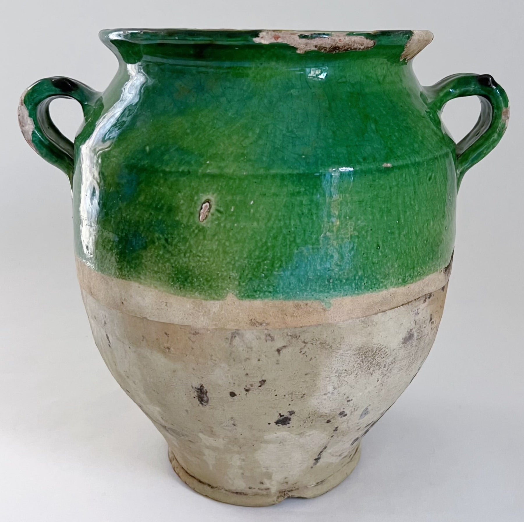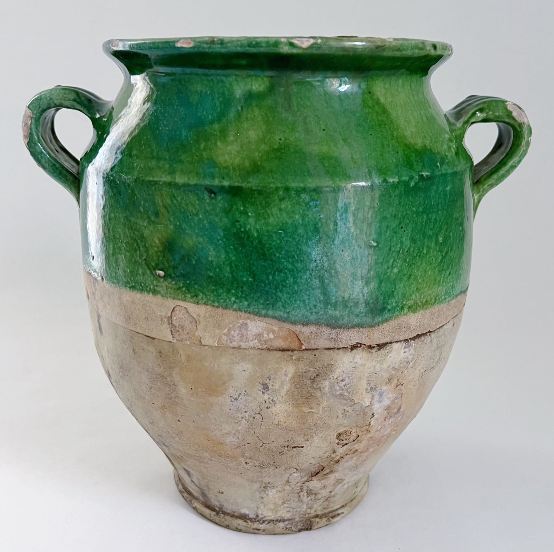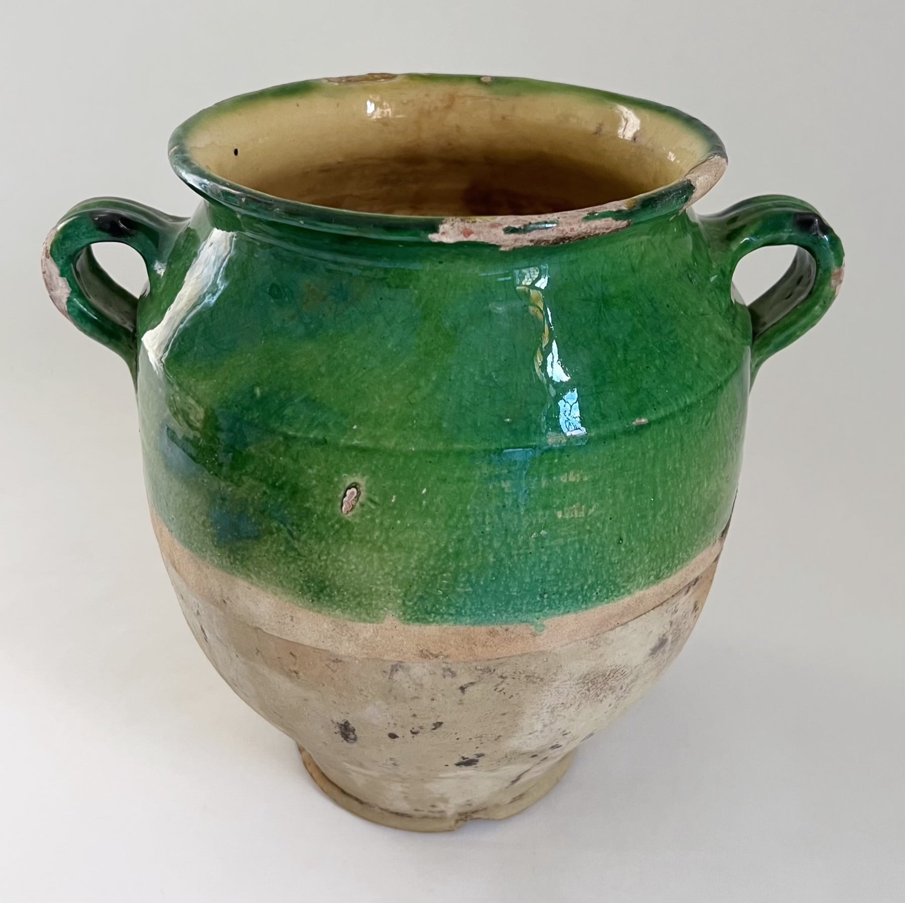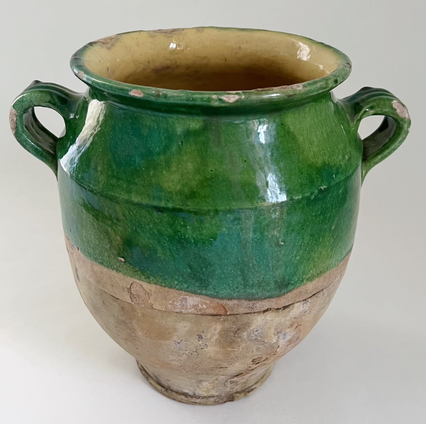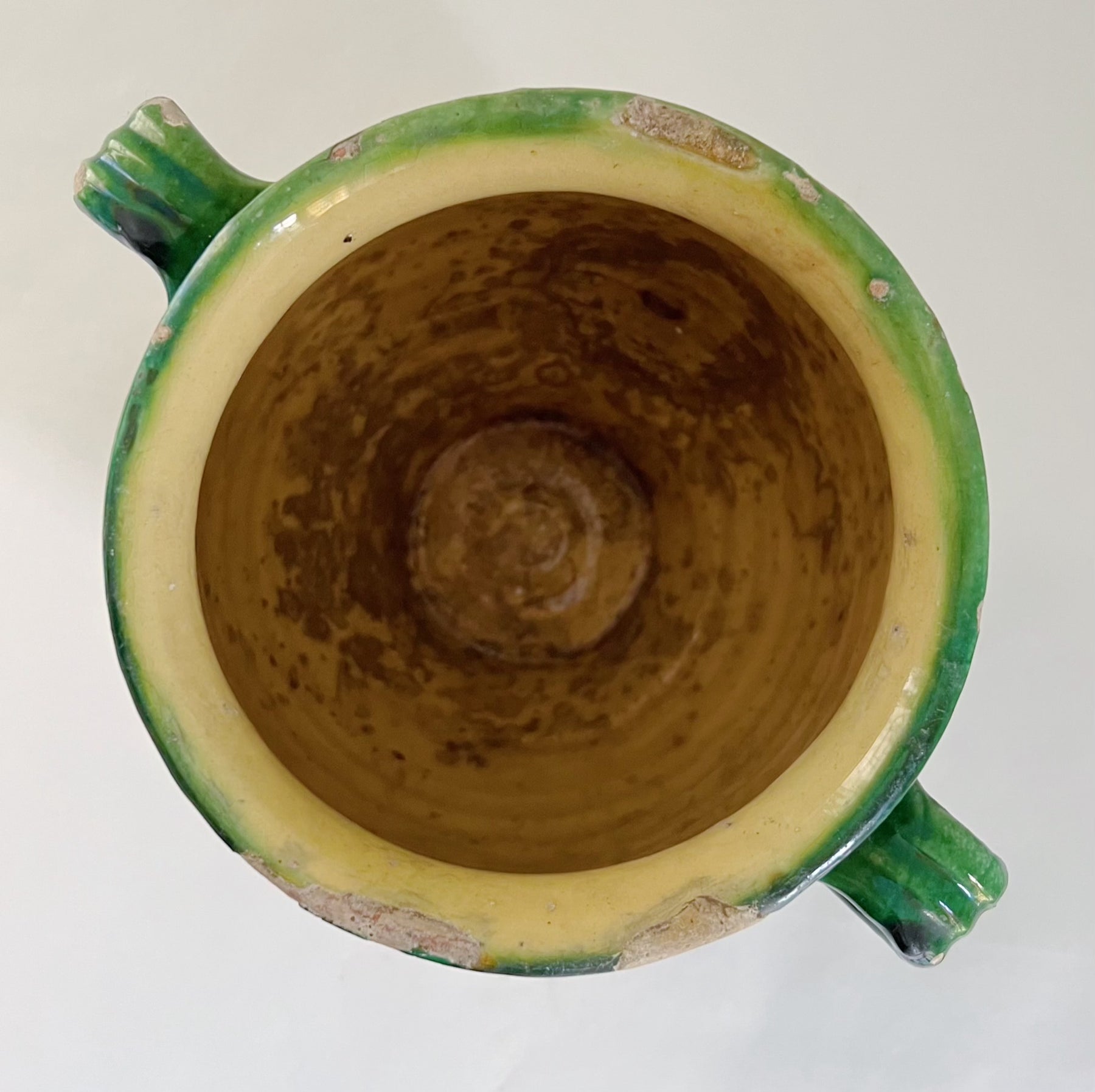 Smuk gul-glaseret krukke fra sydfrankrig hvor den bl.a. blevet brugt til opbevaring af andefedt og andre madvarer. Krukken er fra omkring år 1900.