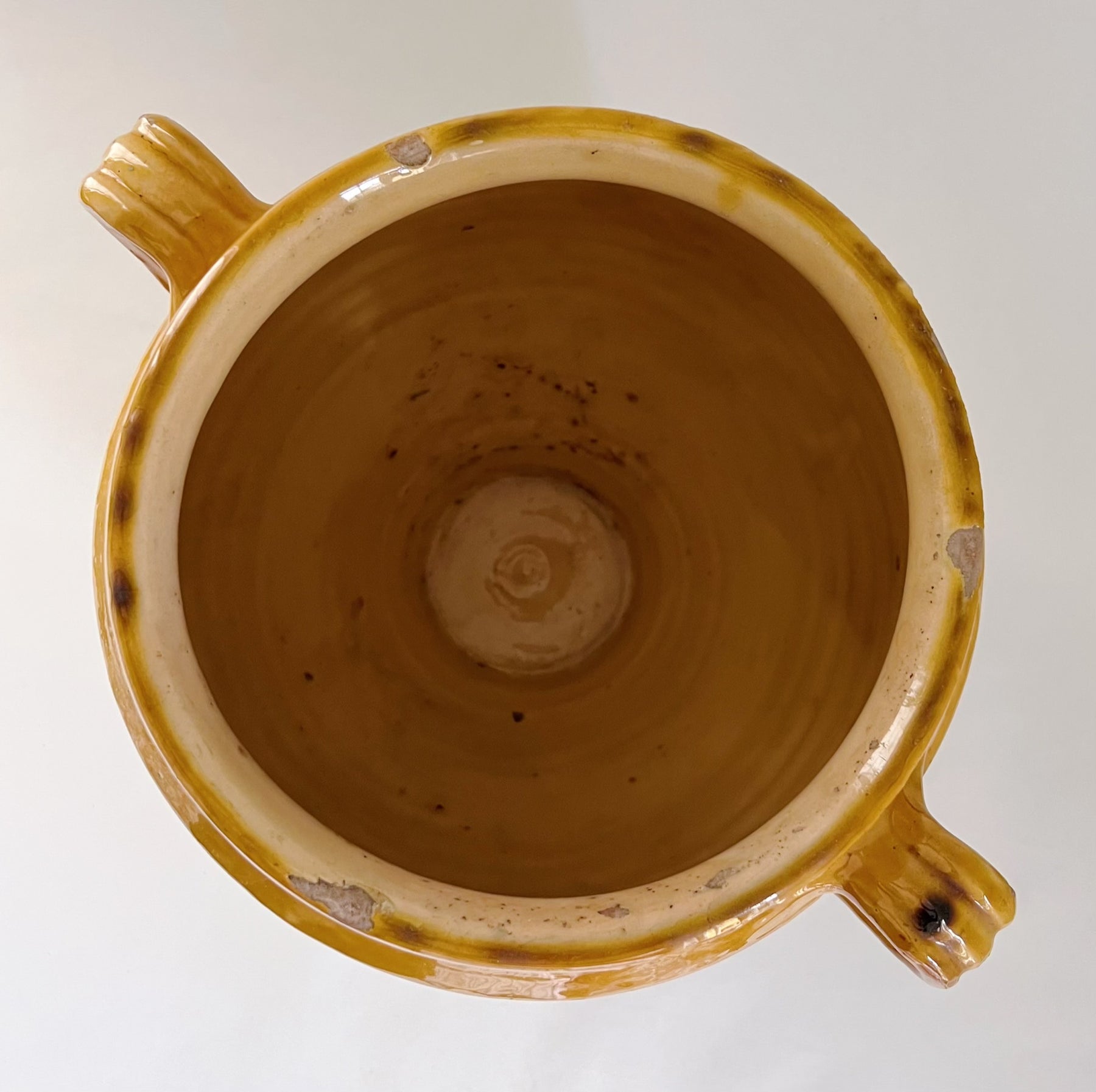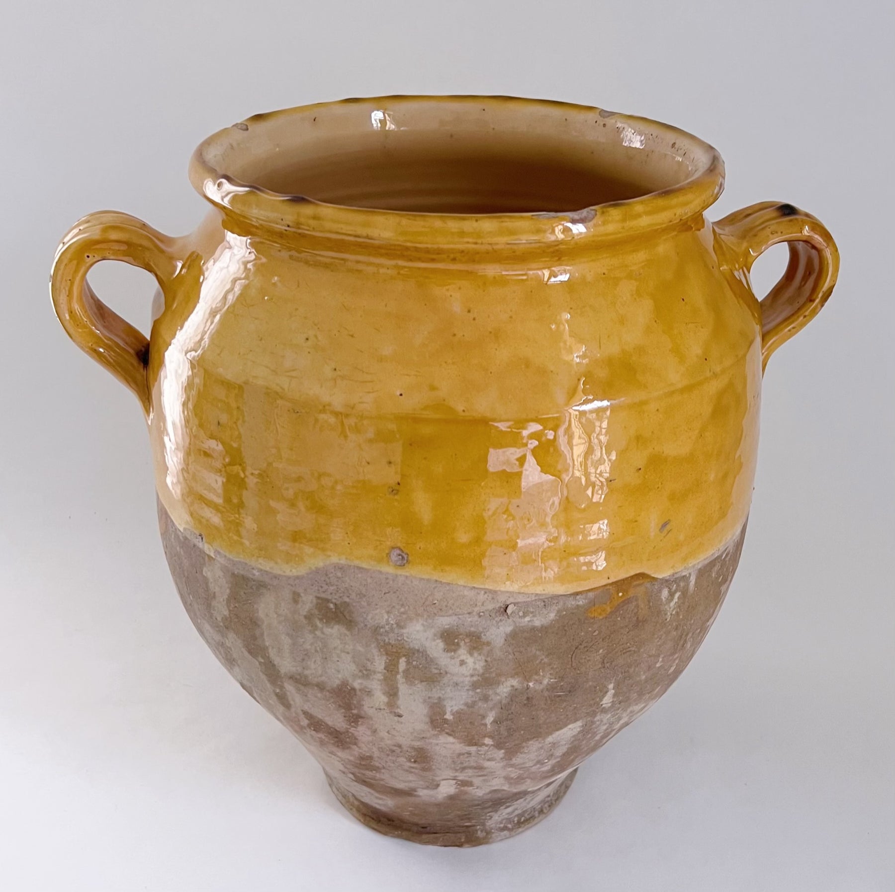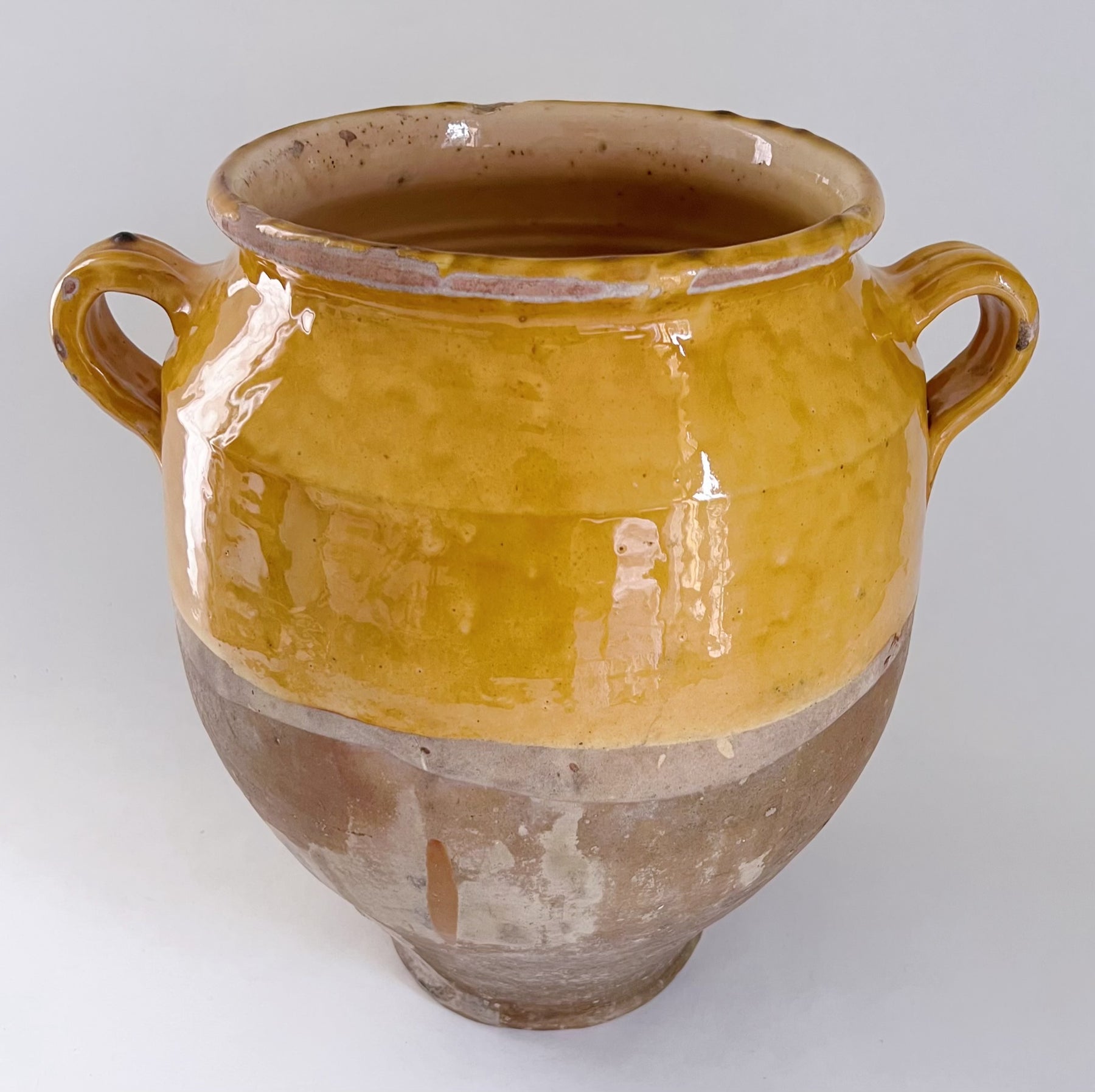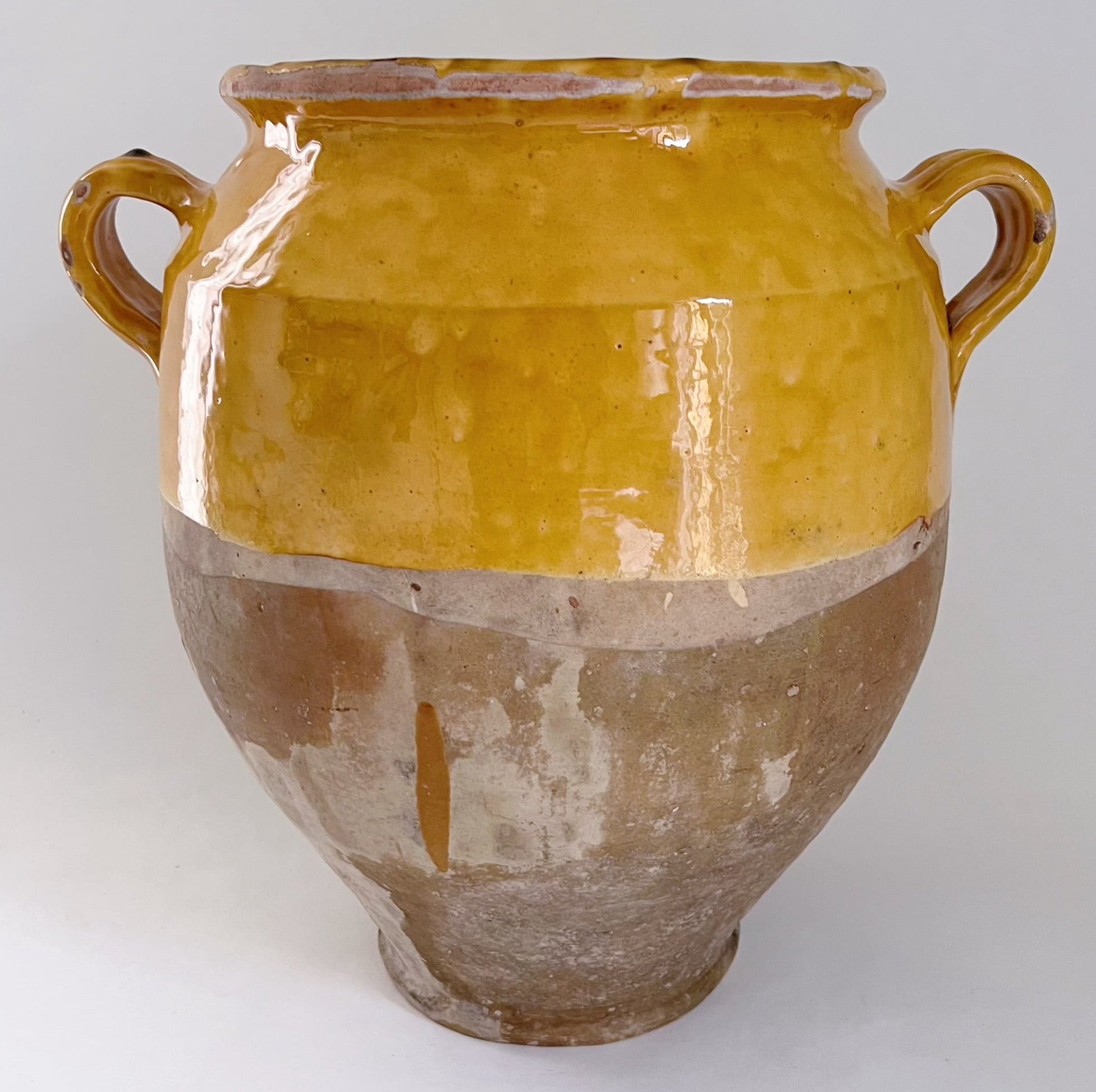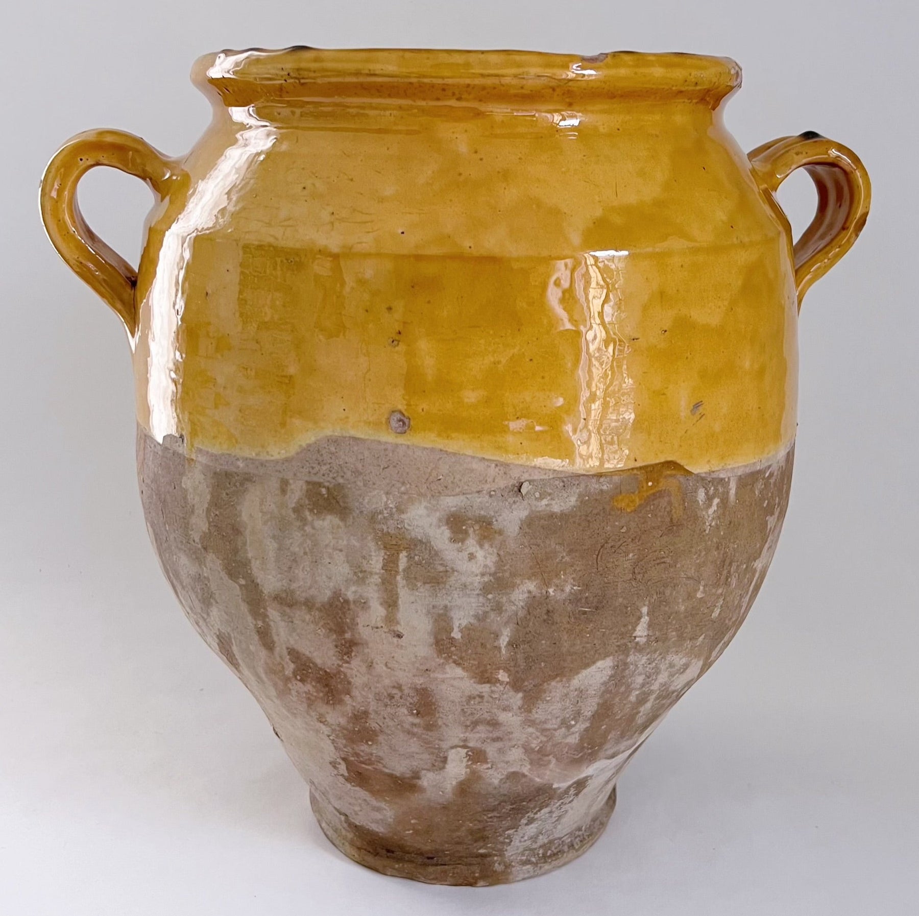 Meget flot og sjælden stor okkergul glaseret krukke fra sydfrankrig hvor den bl.a. blevet brugt til opbevaring af madvarer. Krukken er fra omkring år 1900.