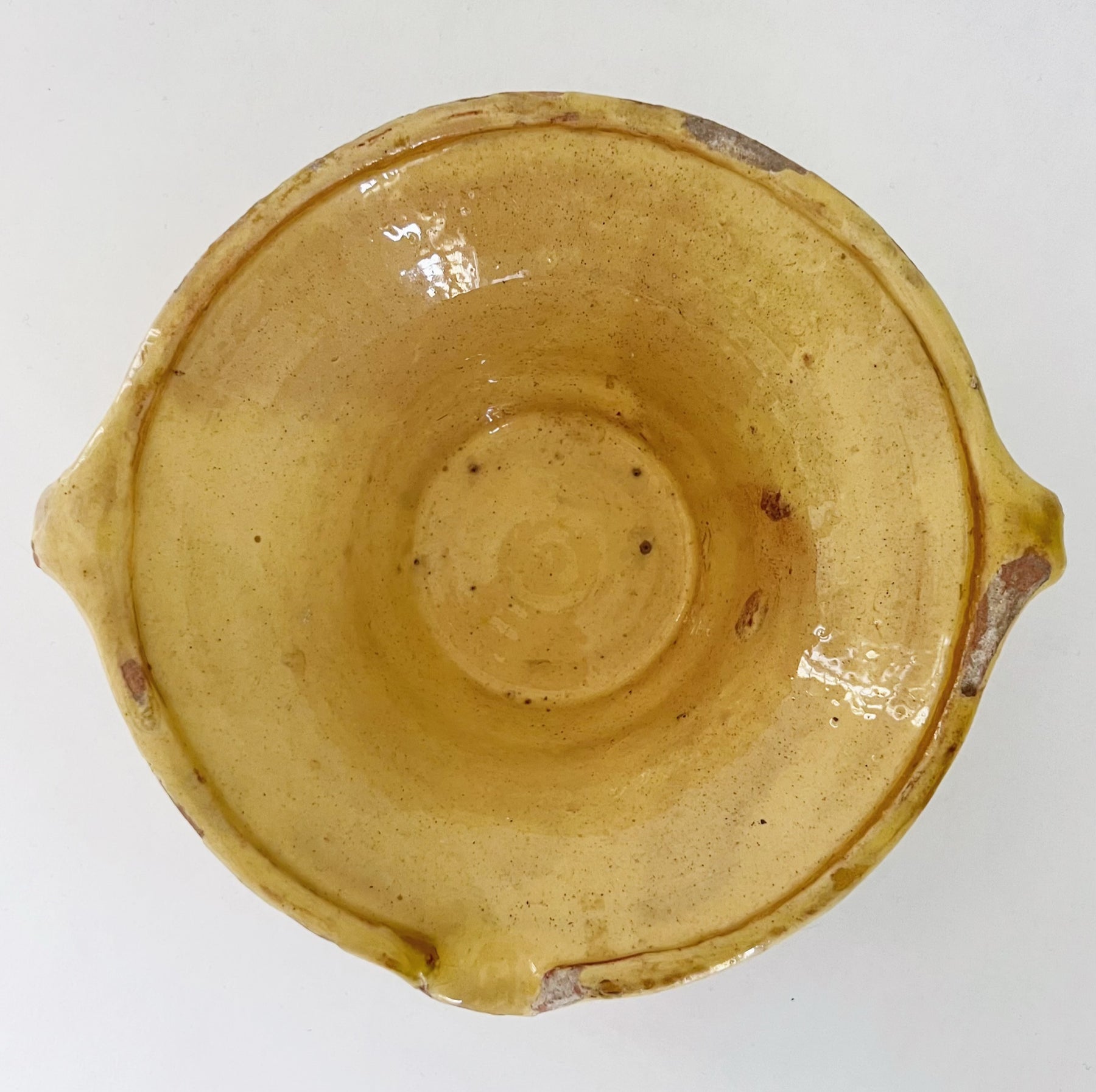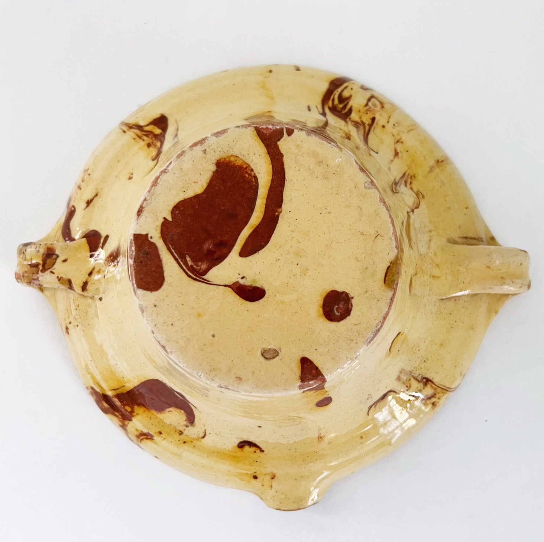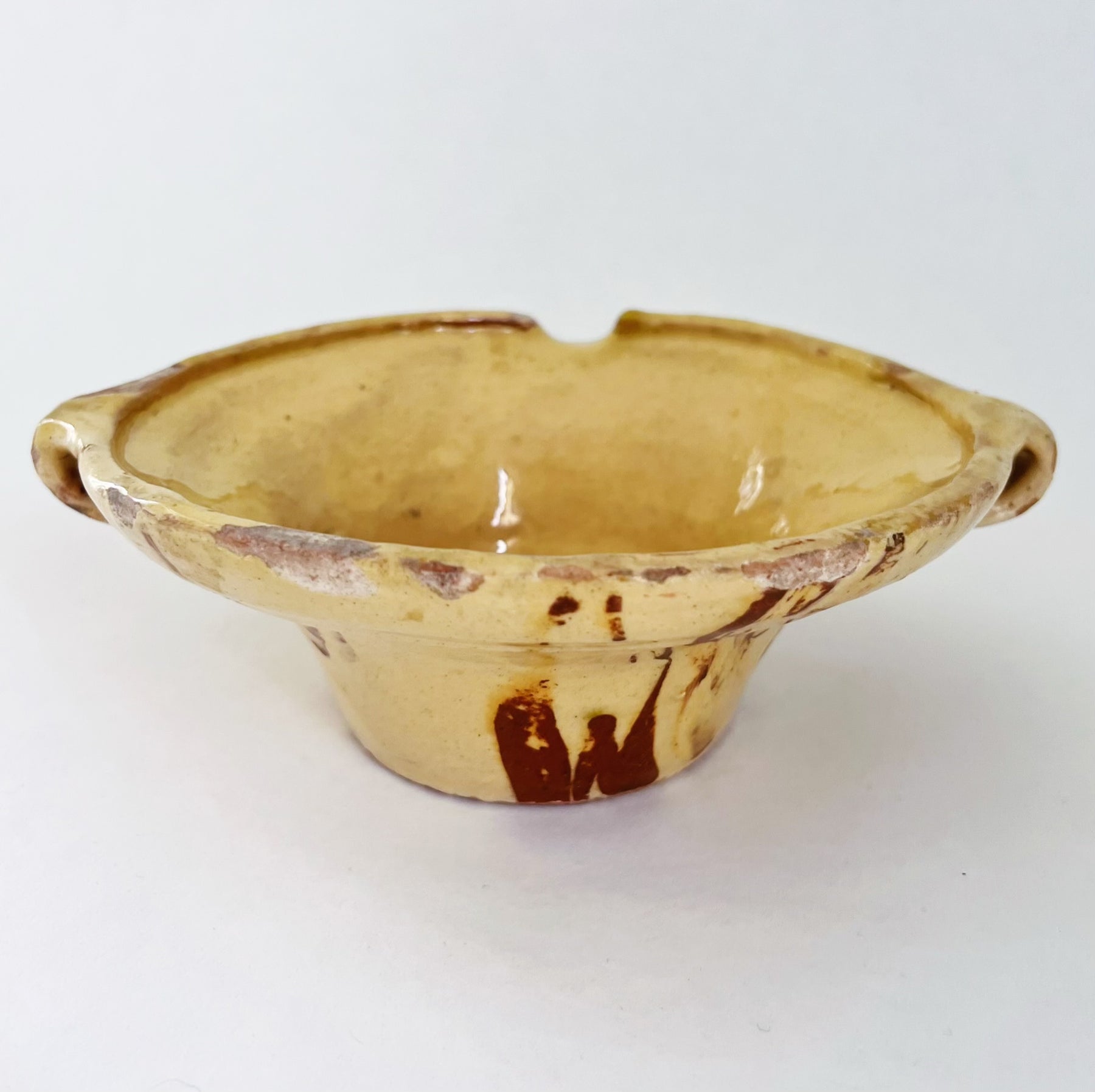 Smukt lille fransk gul-glaseret lerfad. Fadet er fra starten af 1900 tallet.