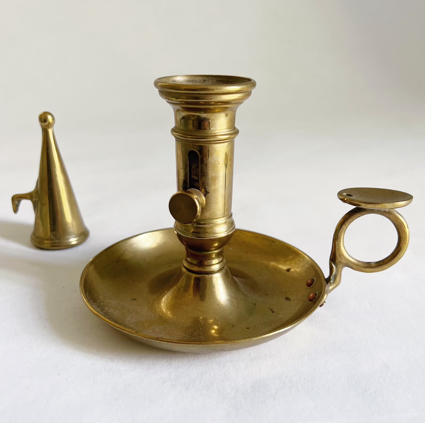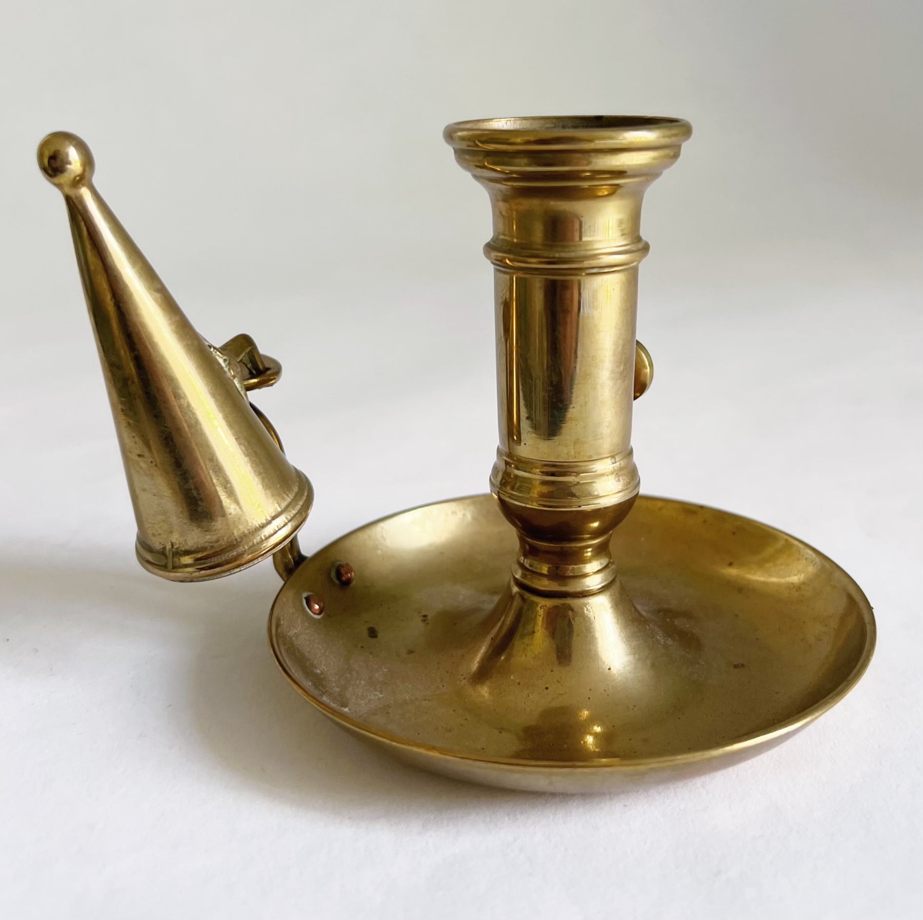 Smuk gammel fransk lysestage med lyseslukker i messing. Meget stemningsfuld og dekorativ.