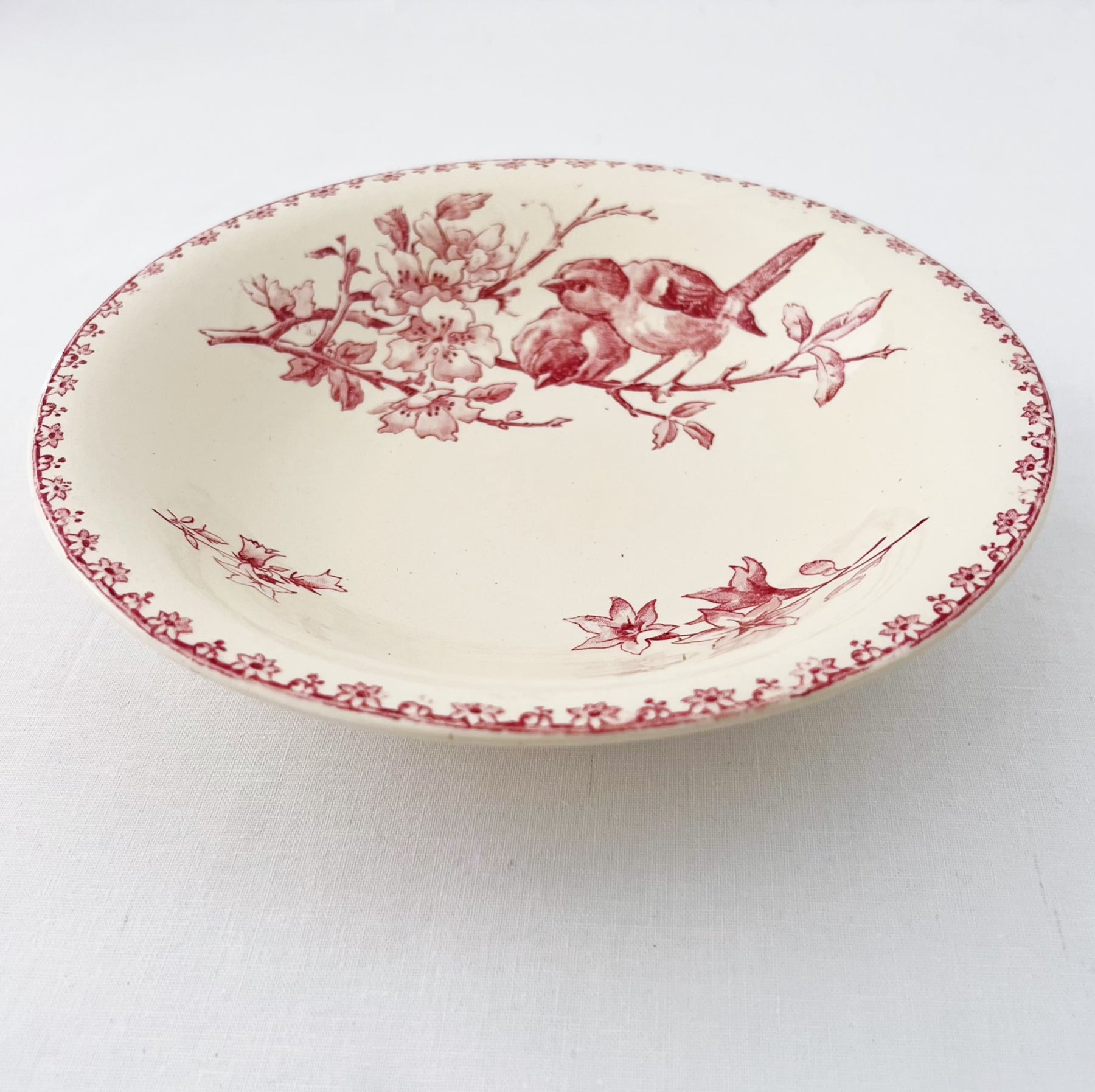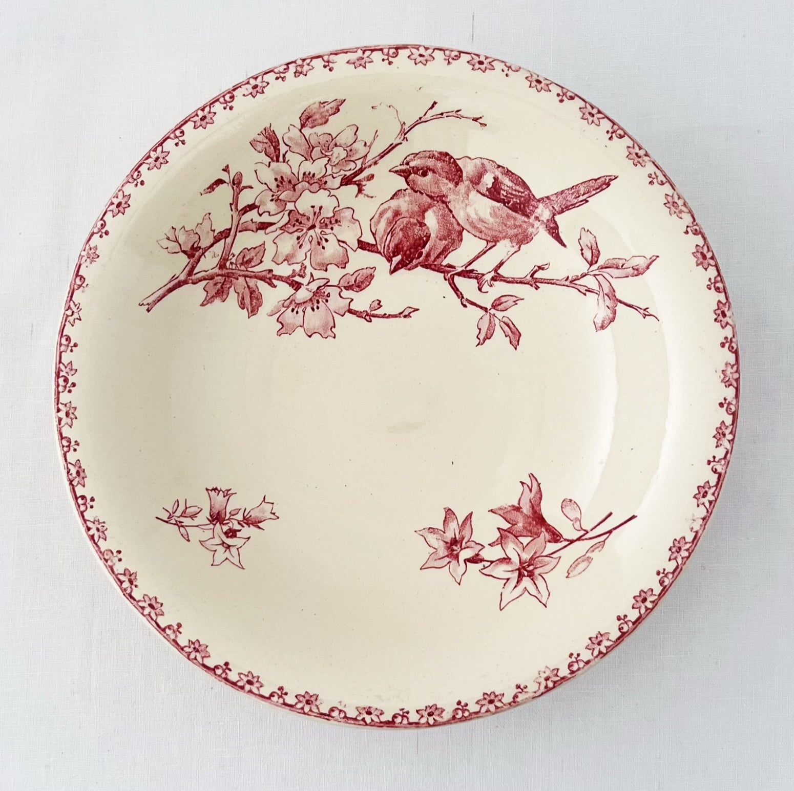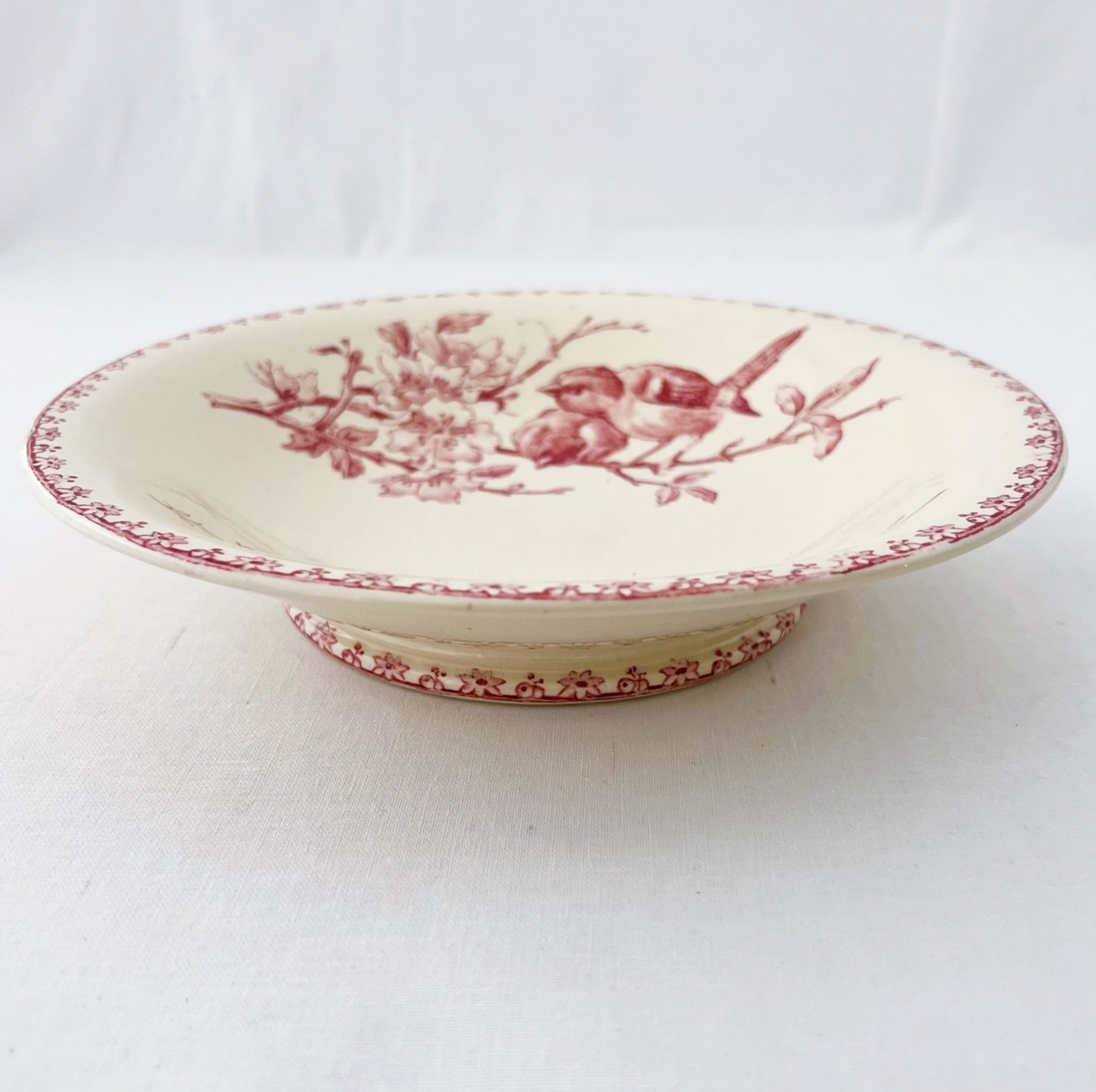 Smuk lav opsats med spurvemotiv fra Sarreguemines. Modellen hedder Favori og er fra begyndelsen af 1900 tallet.