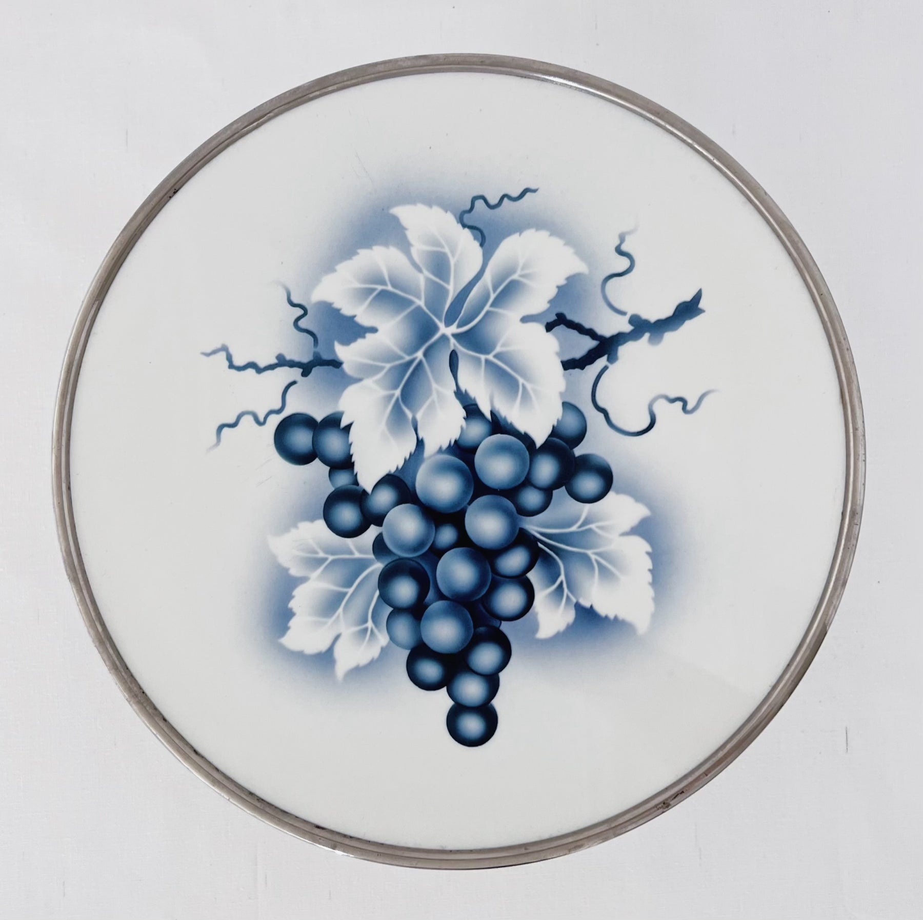 Meget smuk gammel fransk kageopsats i fajance med metal bund. Opsatsen er fra omkring 1920'erne.