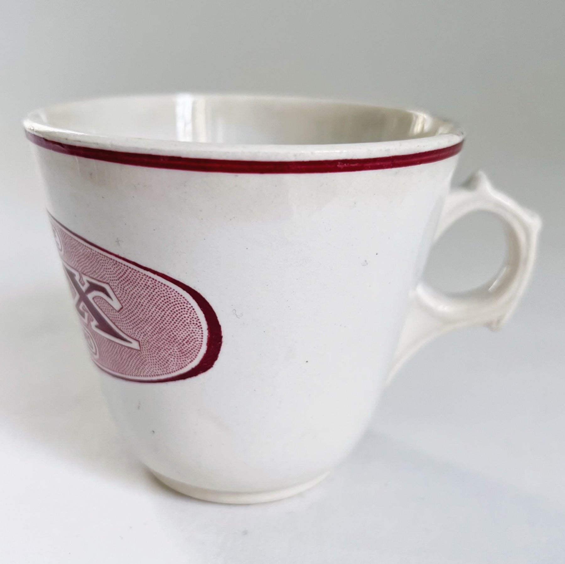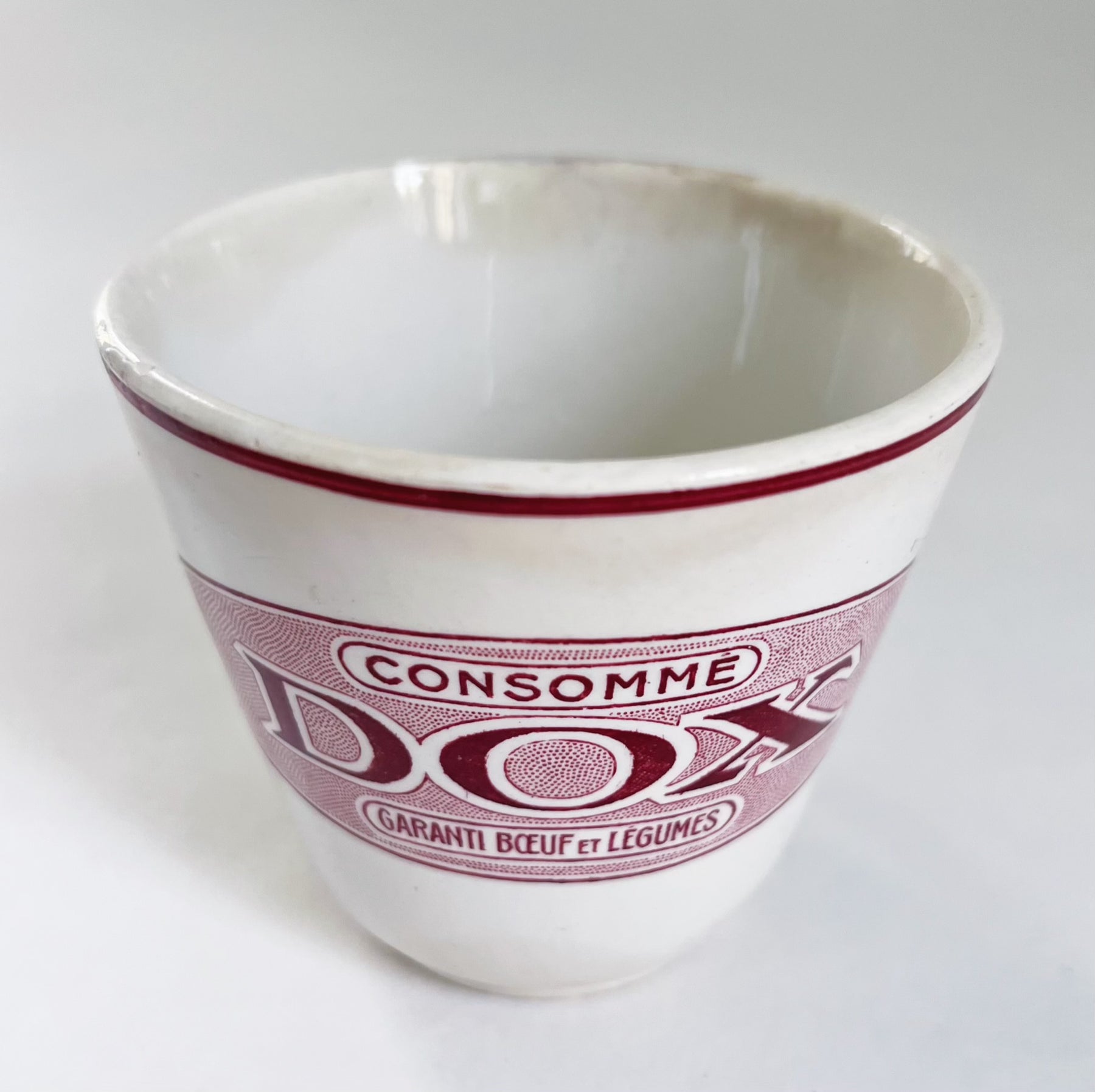 Skøn gammel fransk Dox kop fra Sarreguemines. Koppen er fra første halvdel af 1900 tallet og er blevet brugt til at servere varm suppe på de franske cafeer.