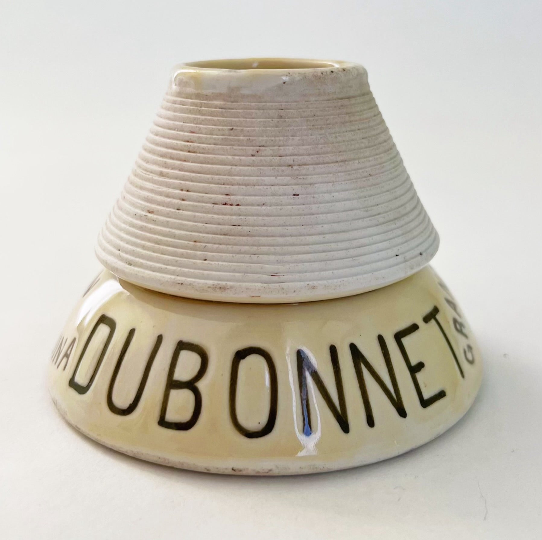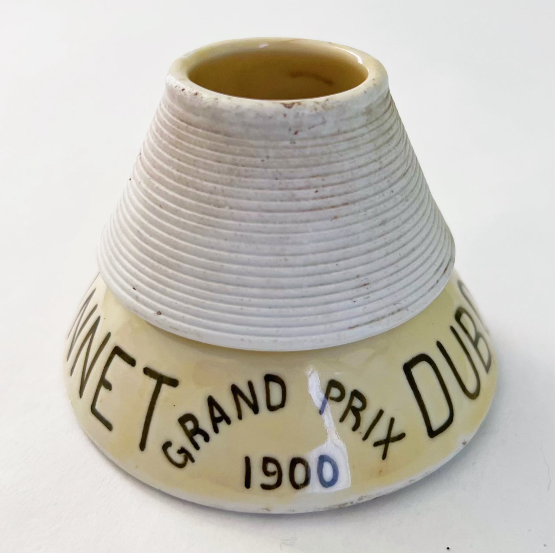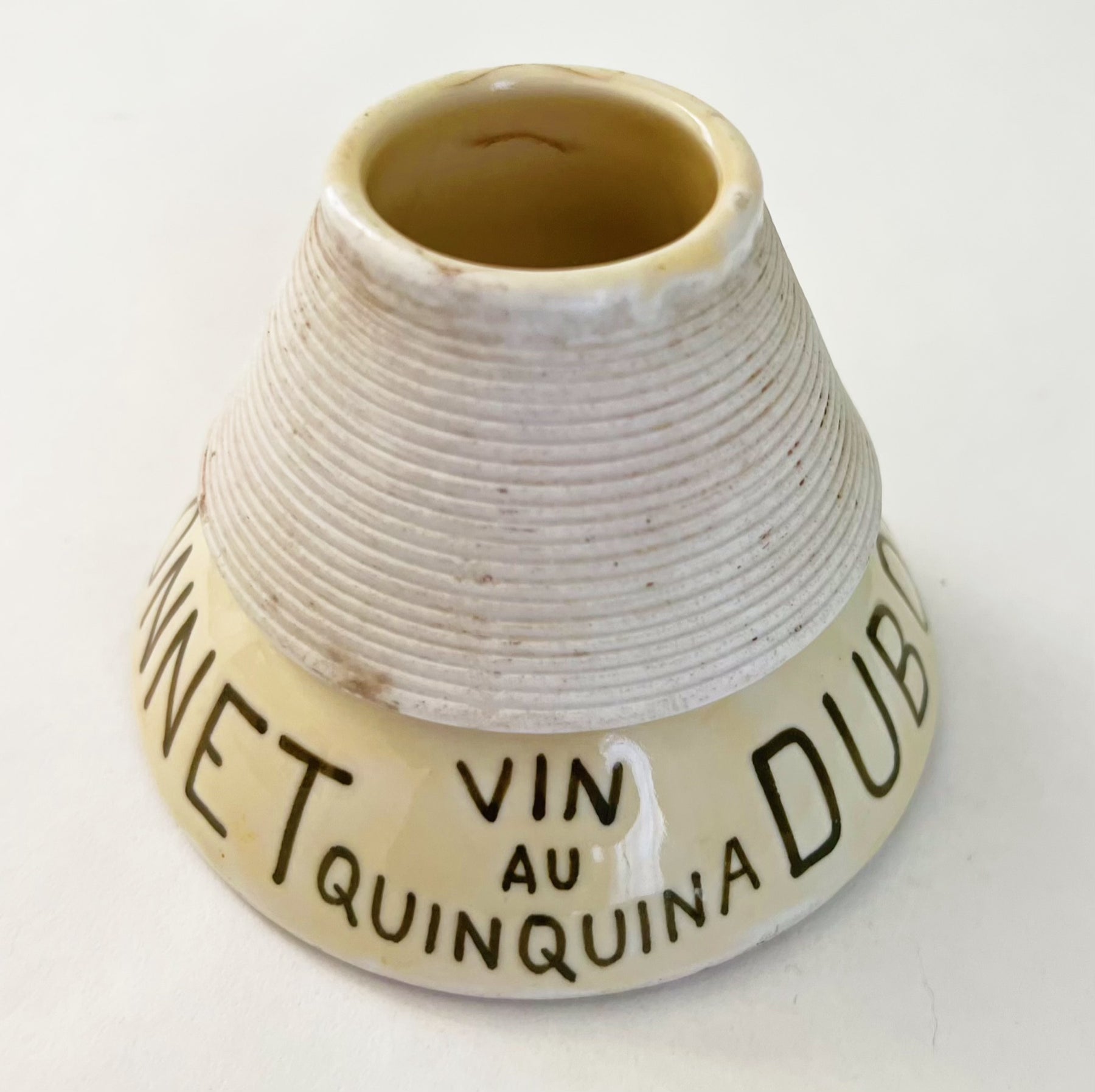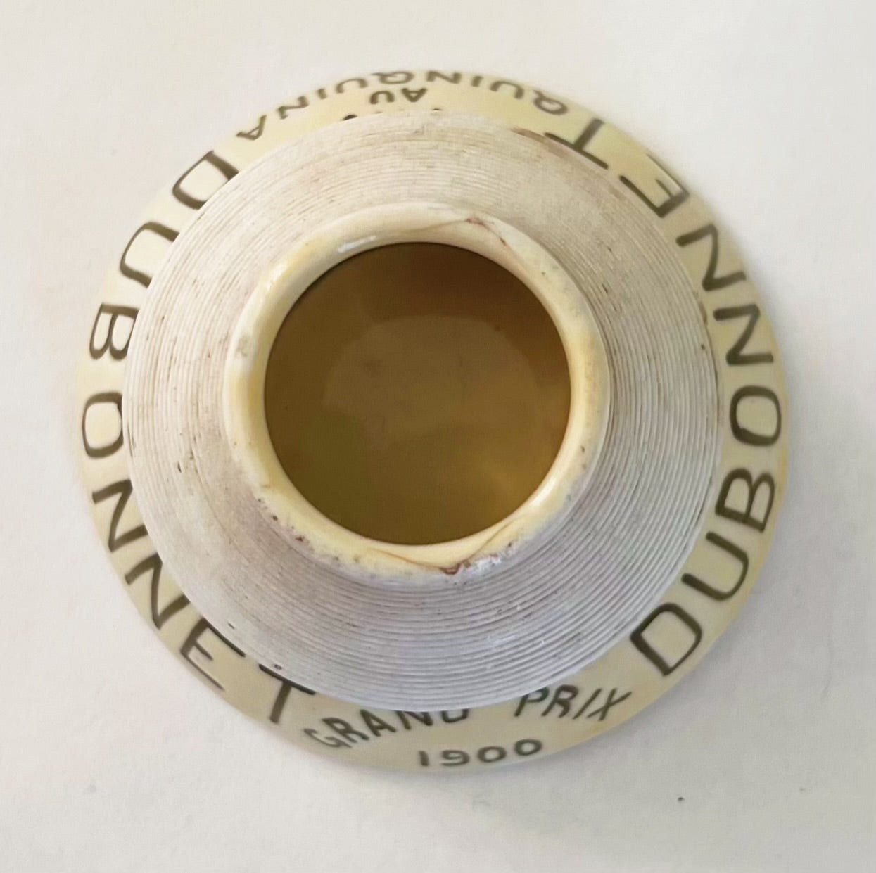 Beautiful old French advertising porcelain "Pyrogène" which was used to hold matches in the French cafes. You could strike the match on it. It is written "Dubonnet" which was an aperitif. Today, these are collectibles. Beautiful as "trés français" decoration.