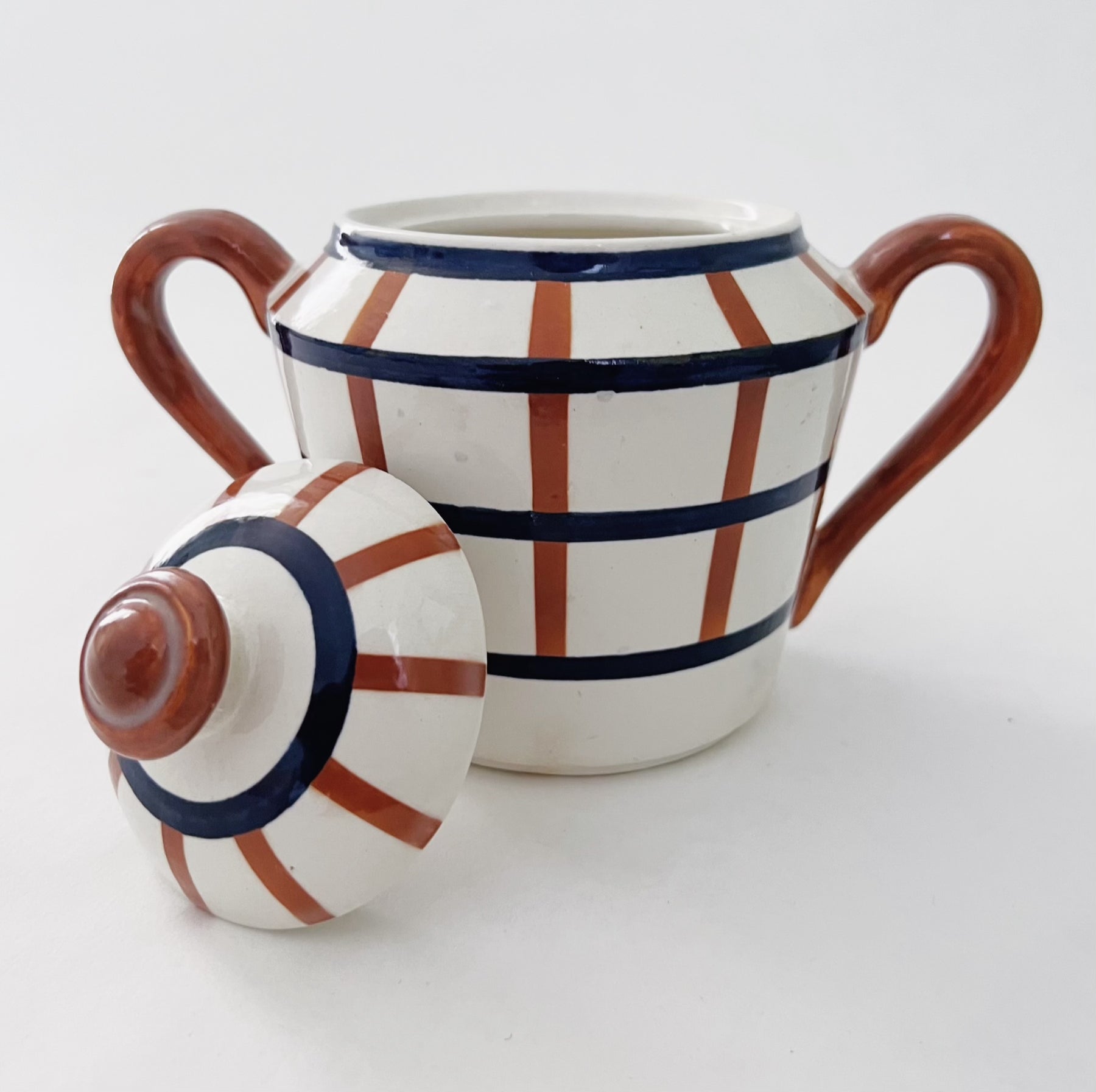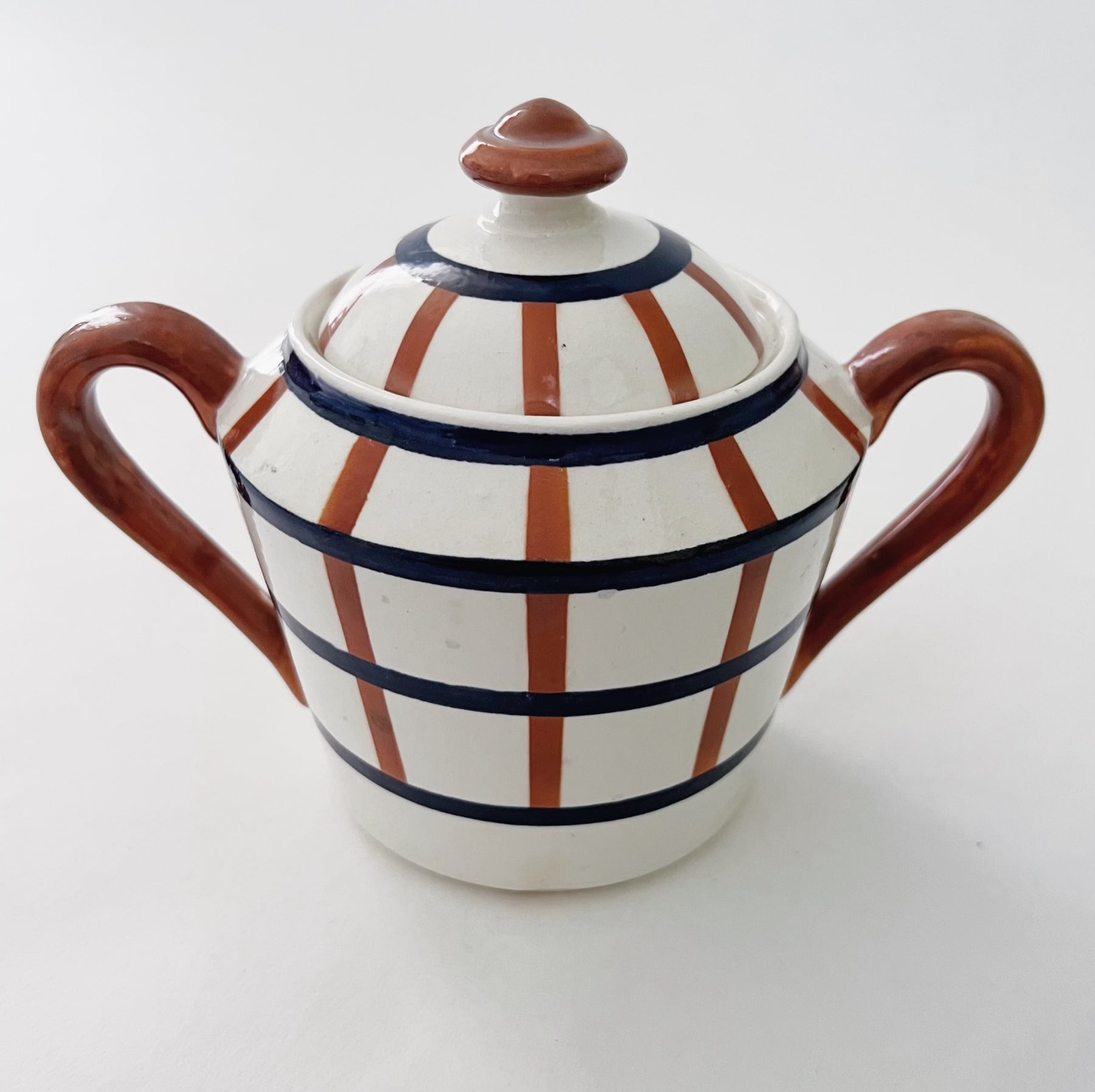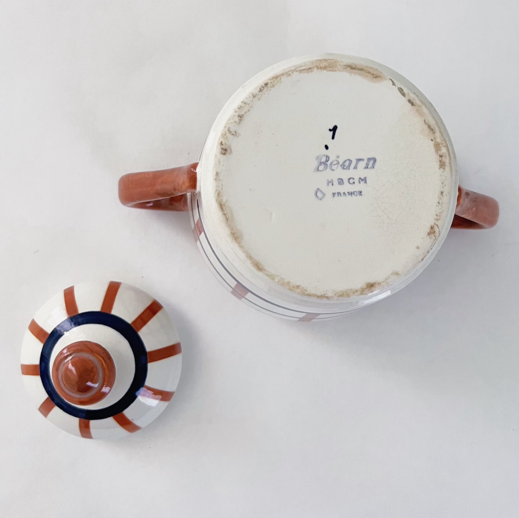 Lovely french sugar bowl from Hippolyte Boulanger Creil et Montereau. The pot is named Bearn and from the first half of the 1900s. Rare model.