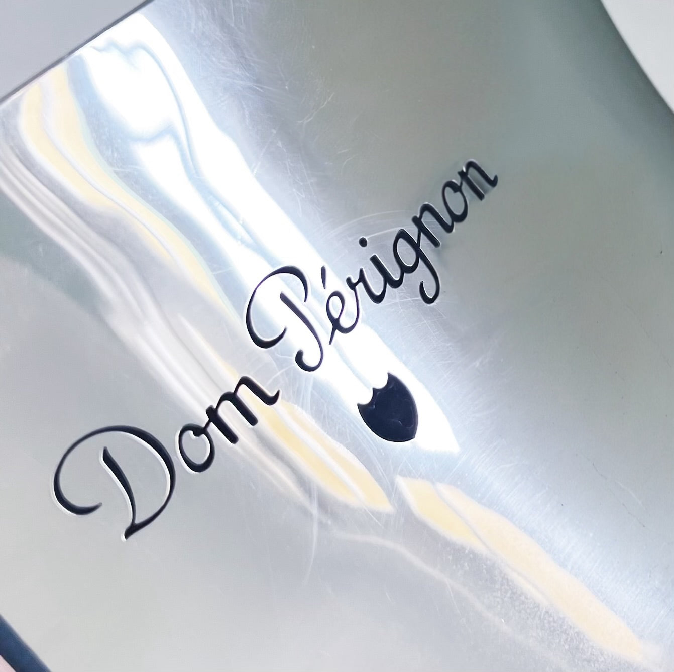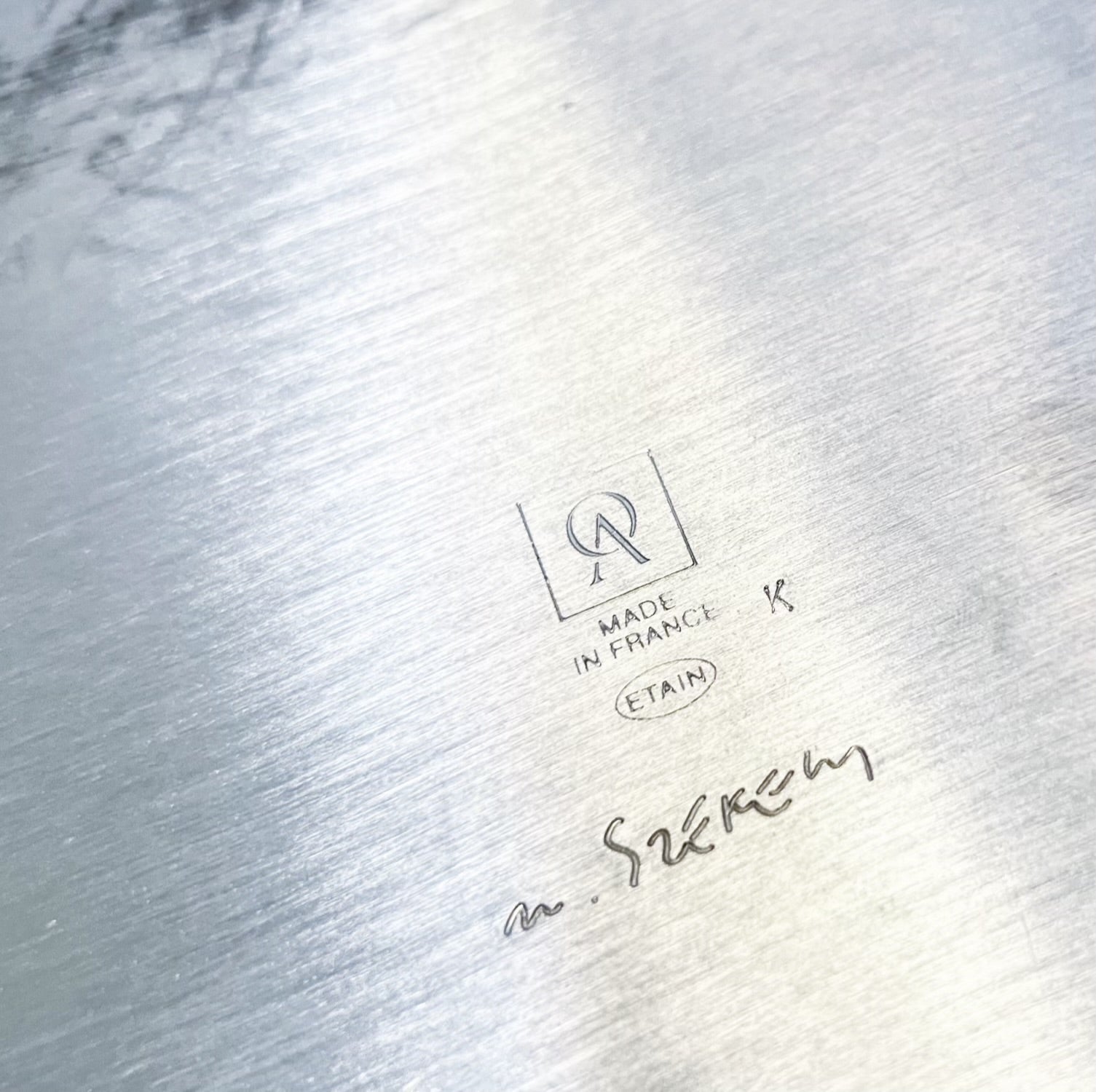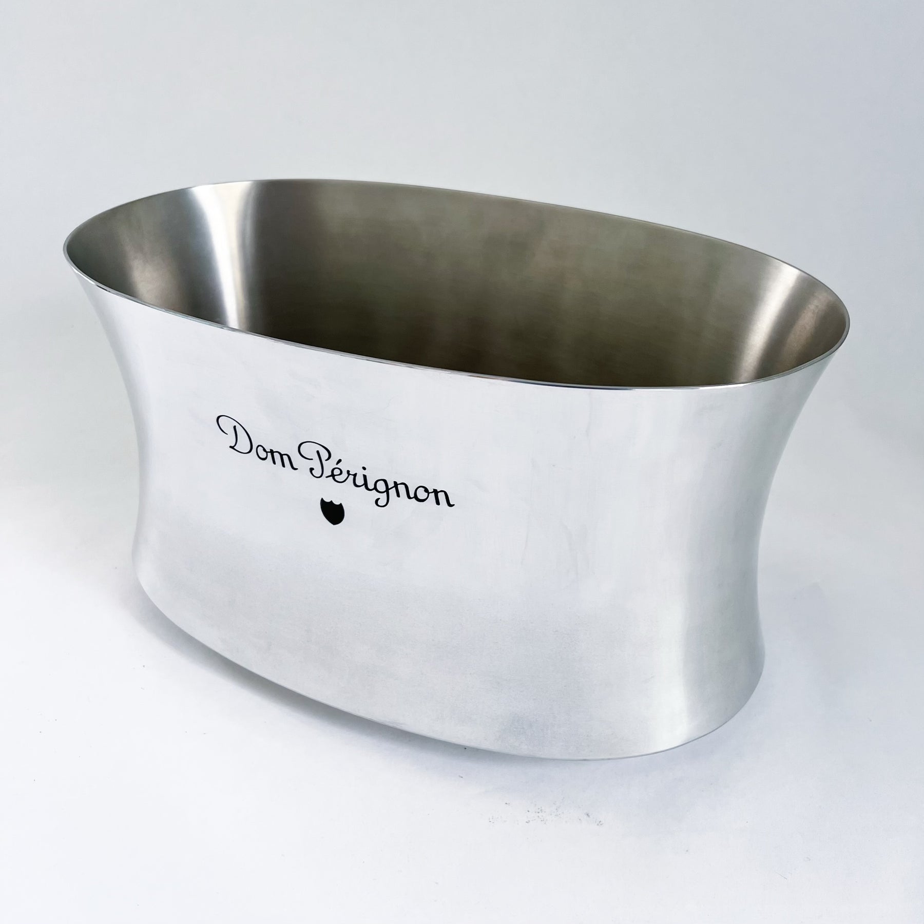 Elegant and rare French champagne cooler in tin from the champagne house Bollinger and stamped with "Les etains du Revelin" at the bottom. The cooler is from the 1950s-60s. The beautiful shape is inspired by the wooden baskets used for gathering grapes. The oval cooler has lovely ornamentation of grapes and leaves on the side. In good condition. Holds 2-3 champagne bottles.