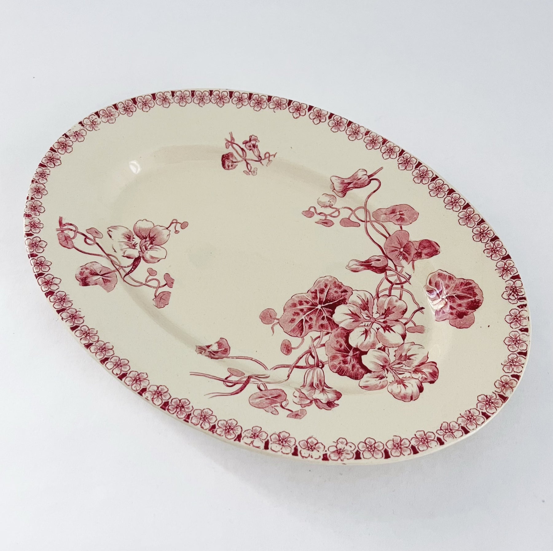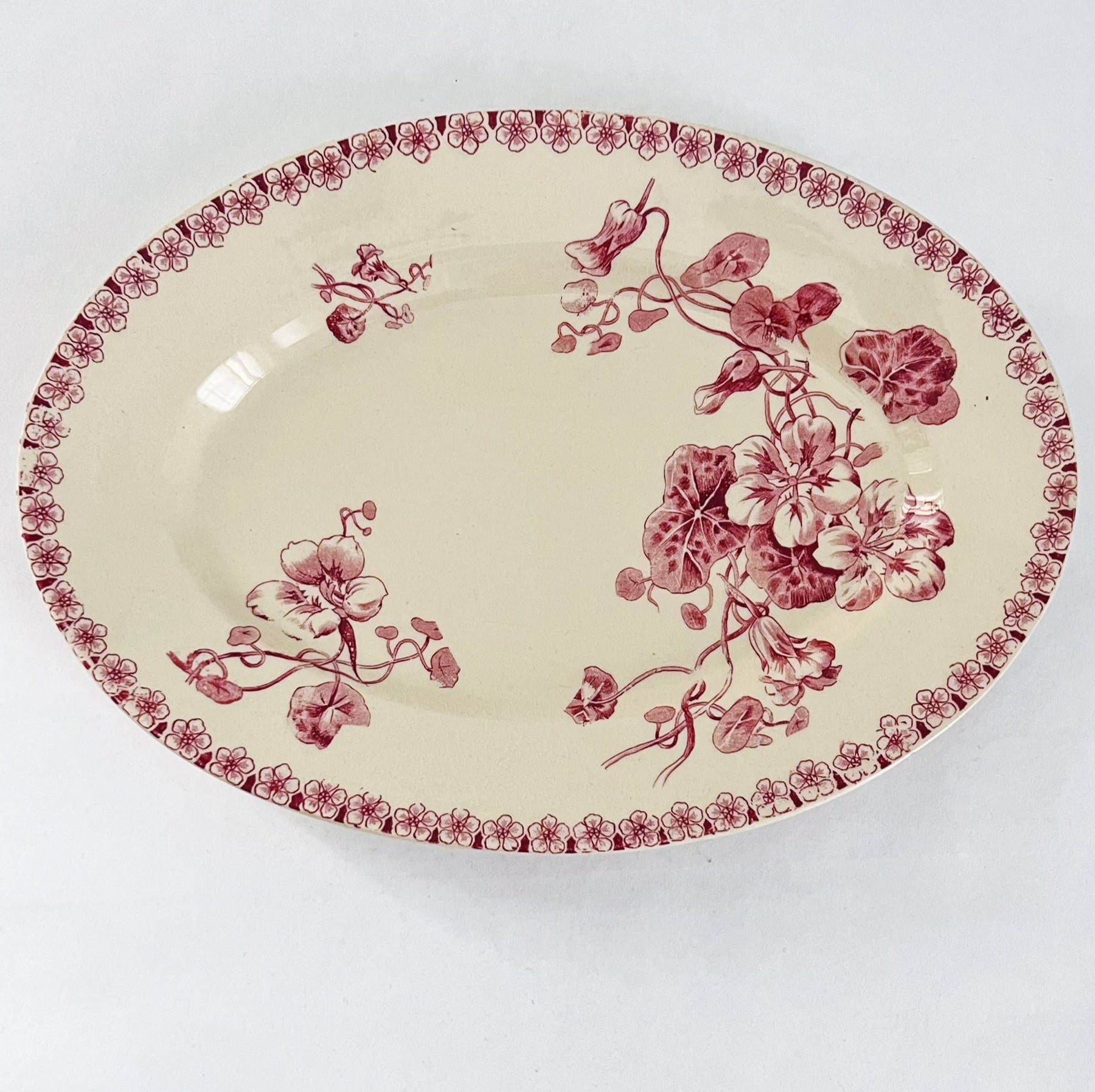 Beautiful serving dish from Gien. The model is called Capucines and from the beginning of the 1900s. Diameter: 30 cm.