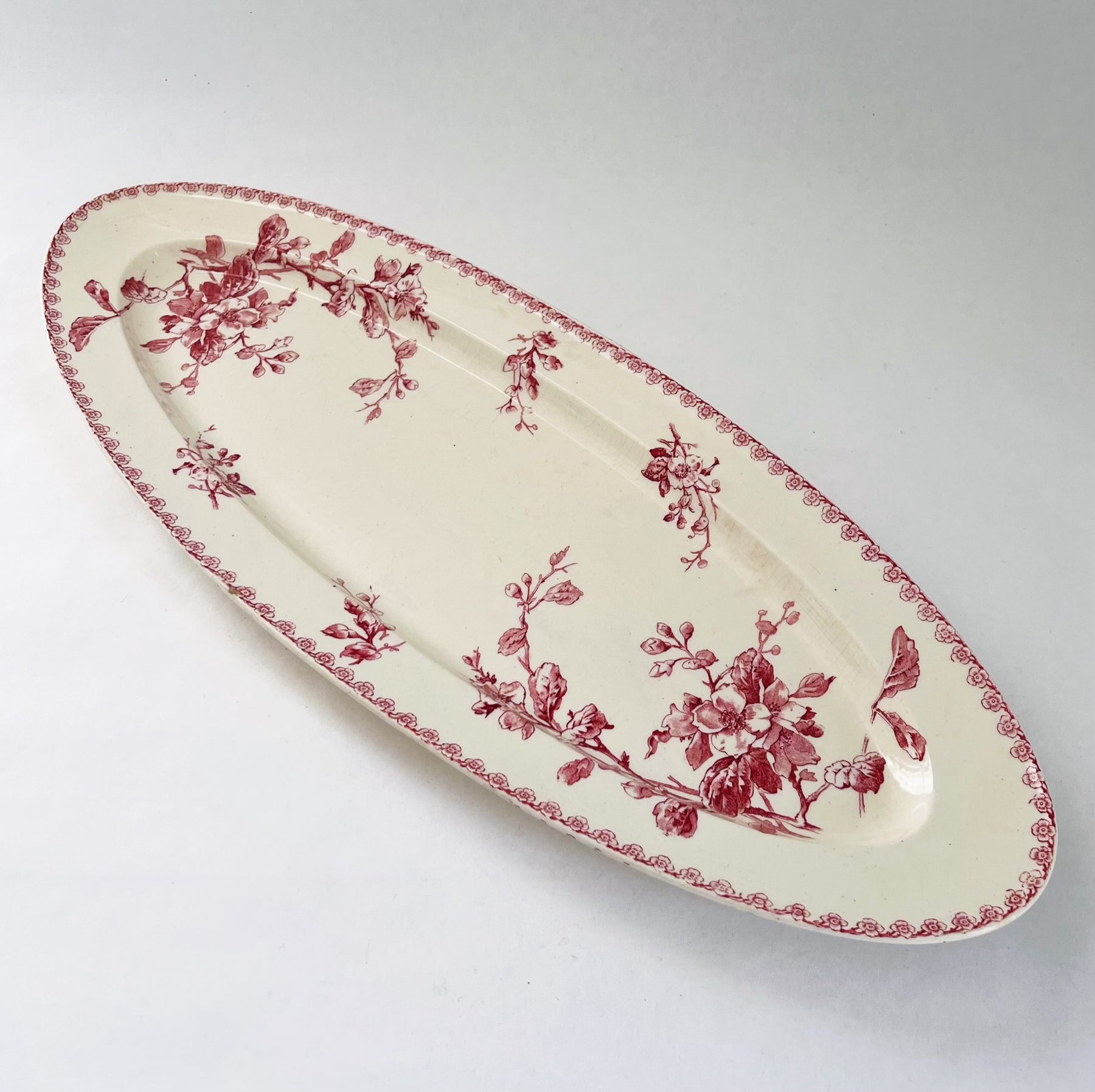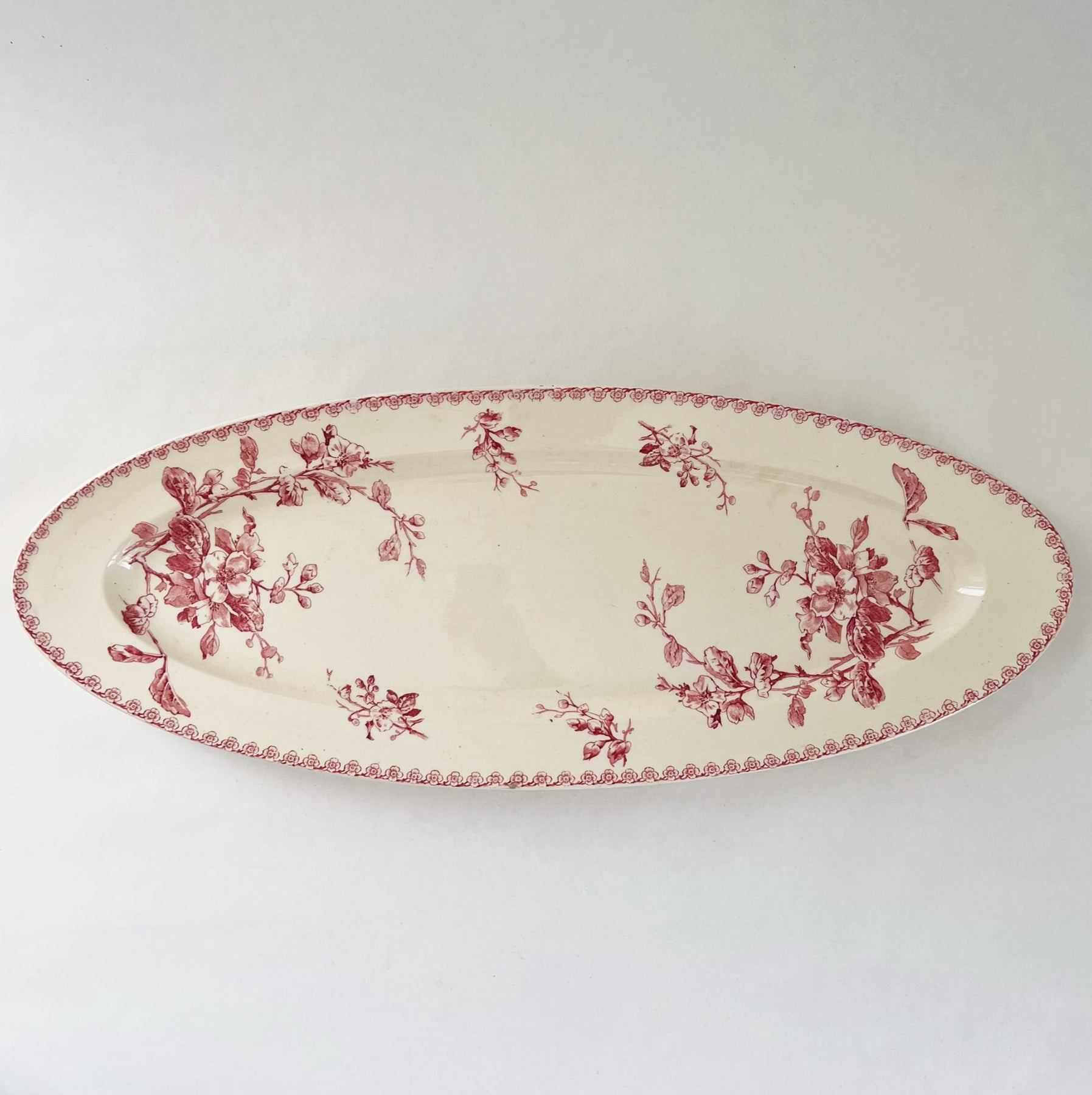 Beautiful old French serving dish from Gien. The model is named Fleurs Normandes is from the early 1900s.