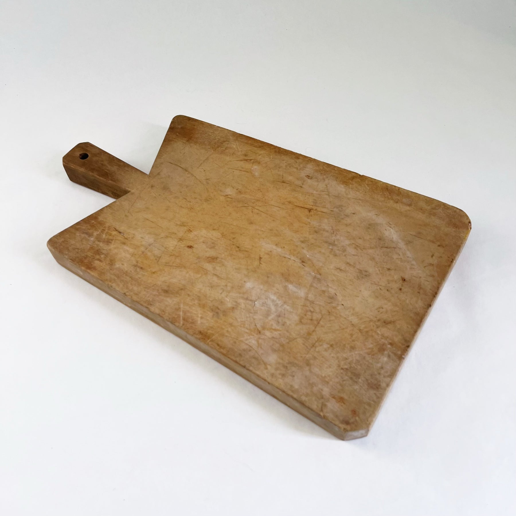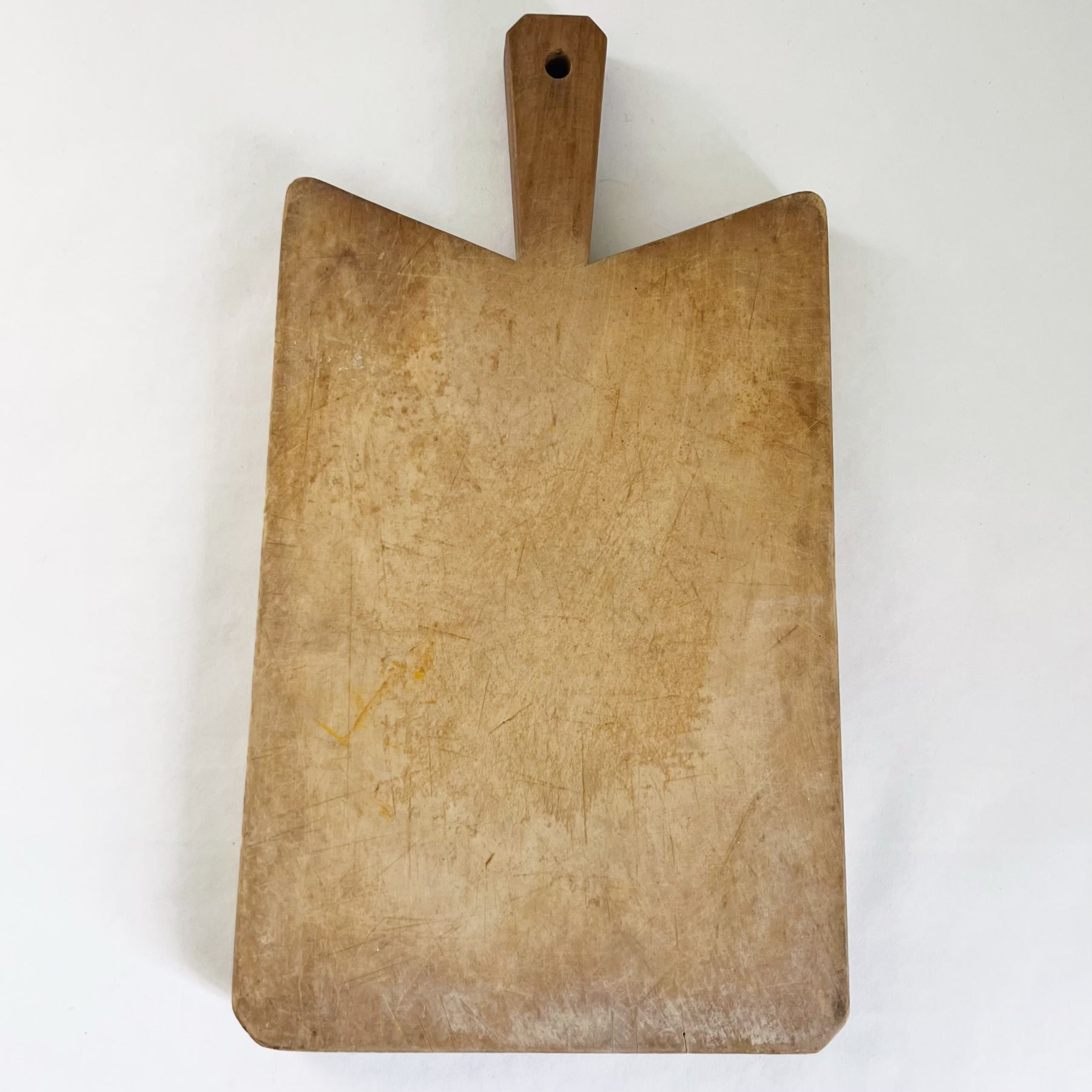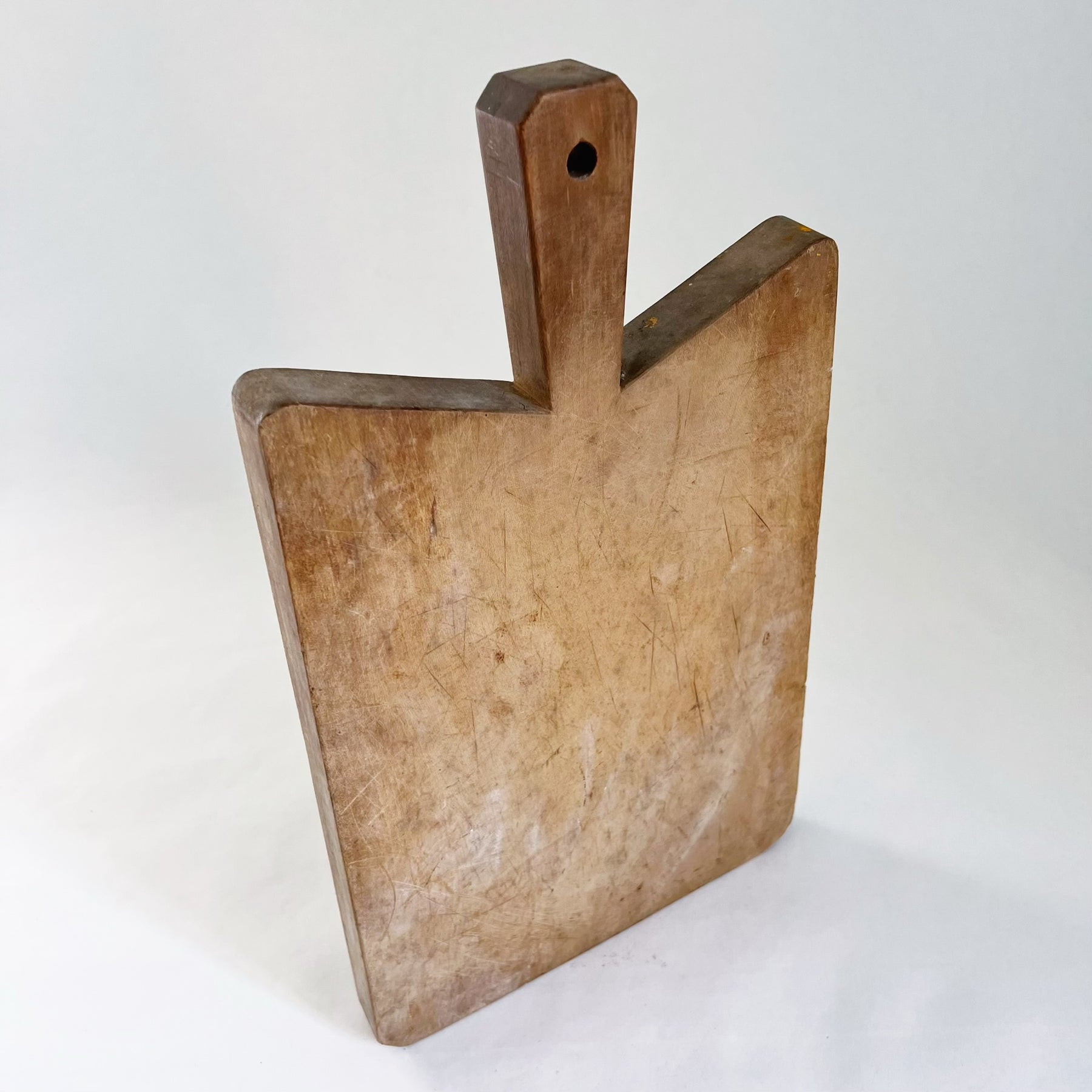 Beautiful old french cutting board. Length 34 cm (49cm with handle). Width 23 cm. Height 2,5 cm.