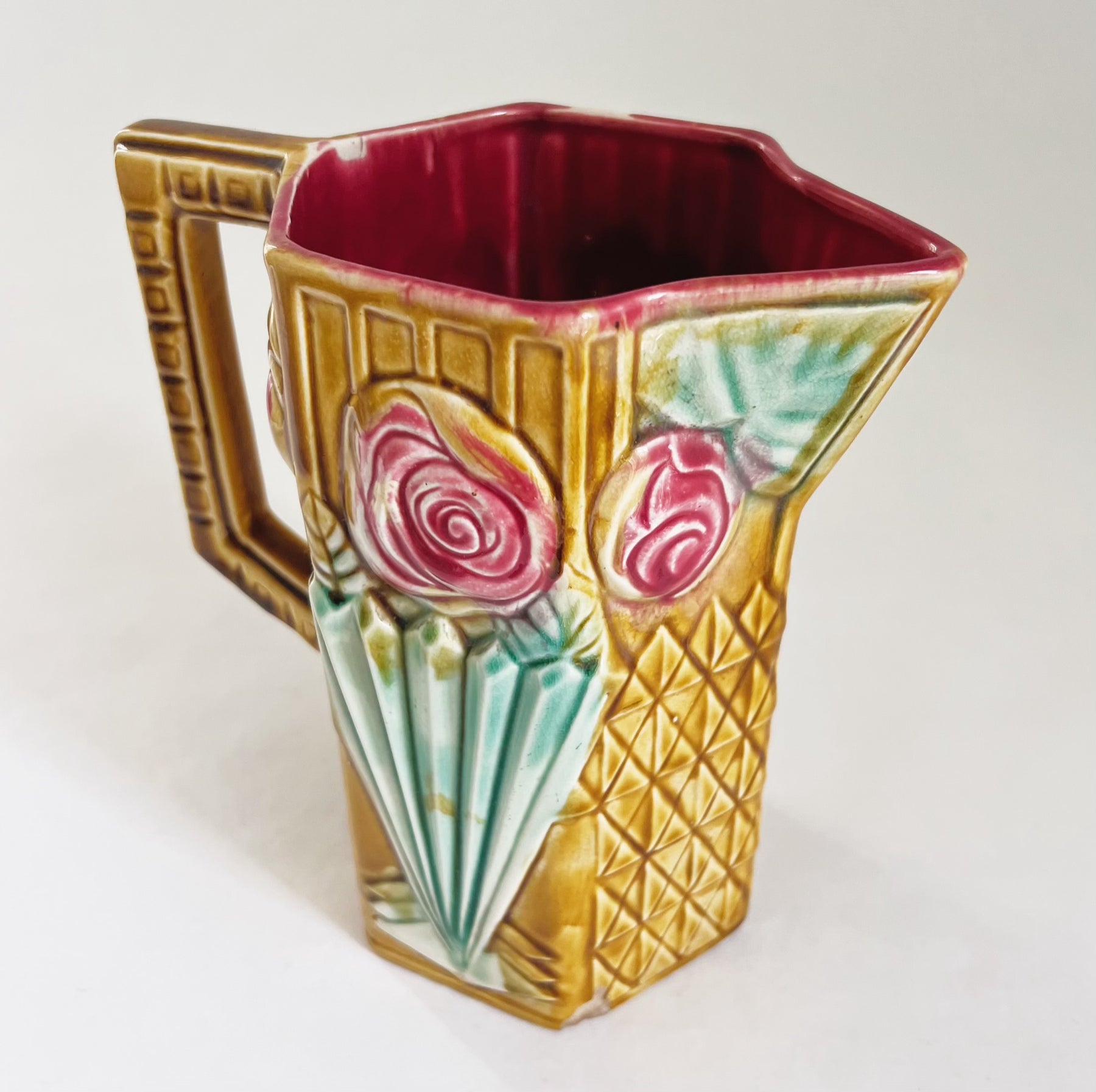 Beautiful french barbotine pitcher from the first half of the 1900s.