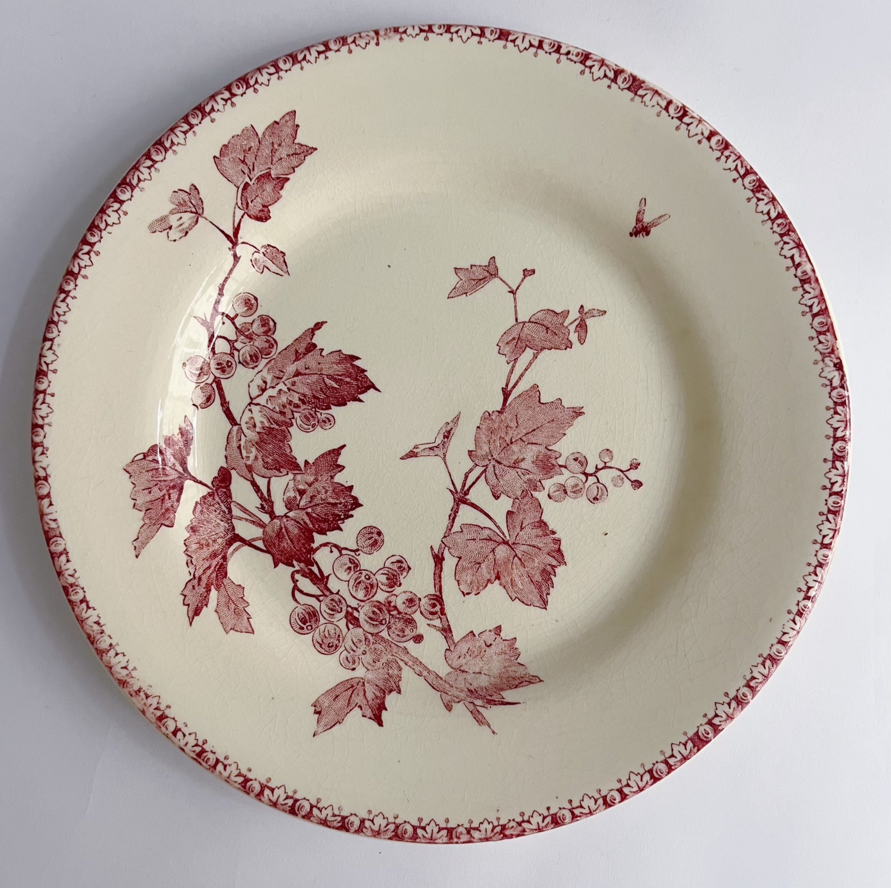 Beautiful and rare plate from Sarreguemines. The model is called Groiselles and from the early 1900s.