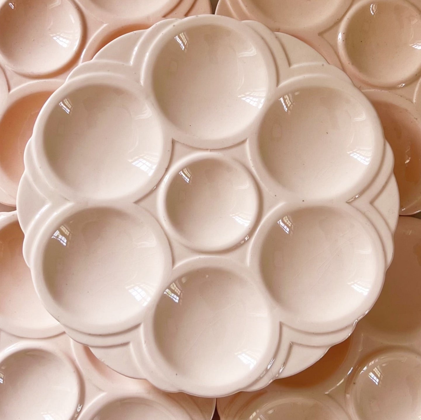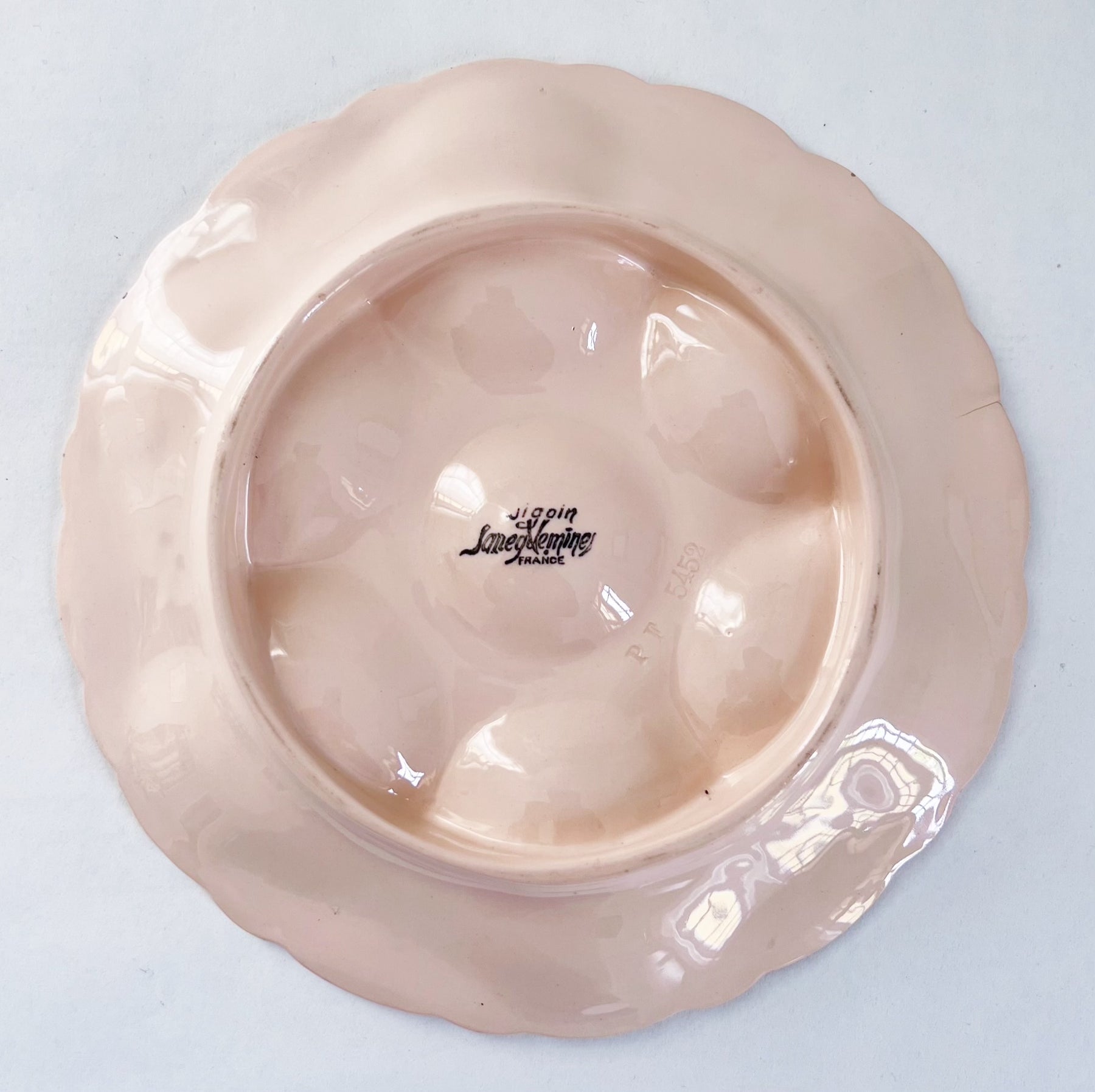 Beautiful old french oyster plate for 6 oysters from Sarreguemines. The plate is from the mid 1900s.