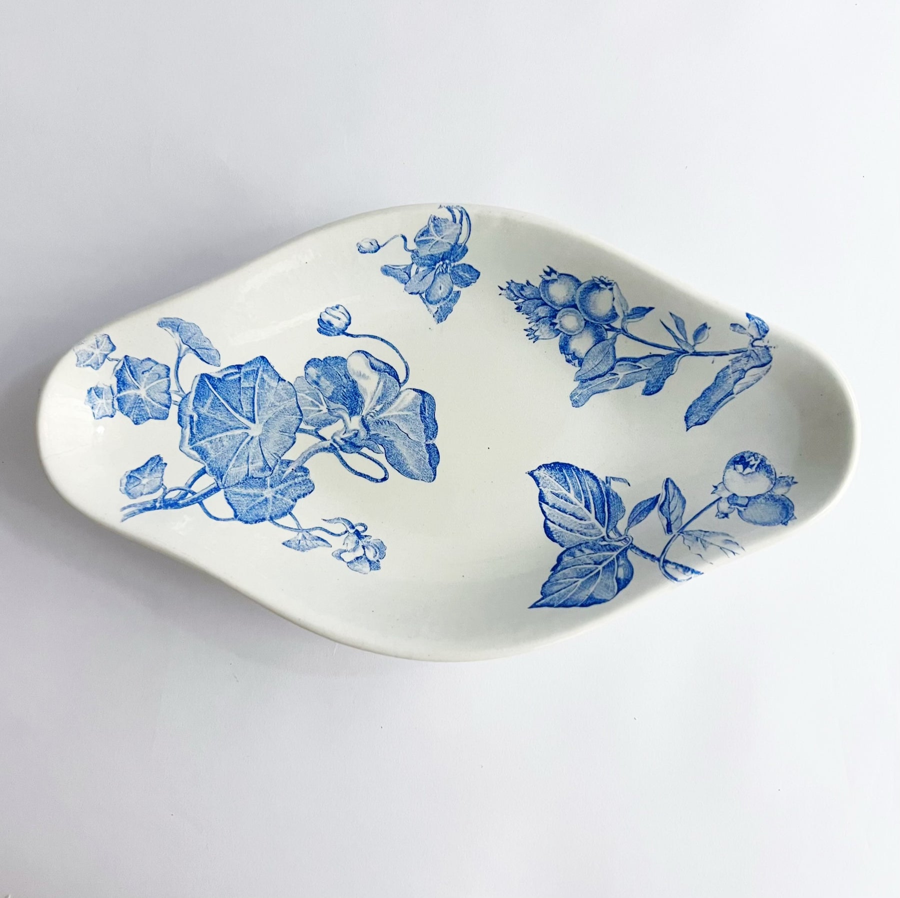 Lovely french oval serving dish from the early 1900s. These oval dishes are often called Raviers in French and are the term for "a small dish to serve 'les hors-d'oeuvre". Perfect for serving snacks, olives, cookies on.